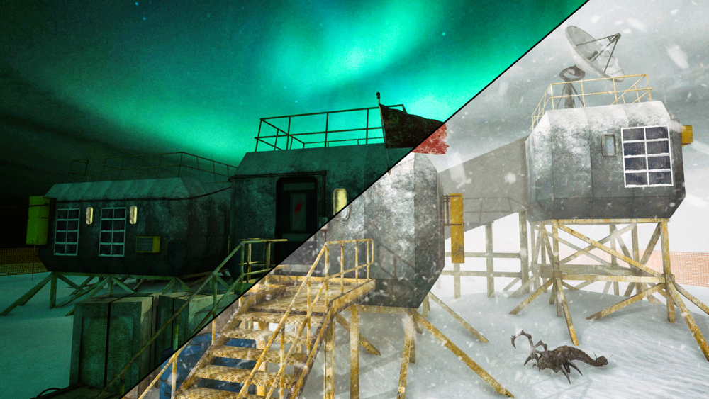 This survival thriller takes place at the station "Antarctica 1". Over the past six months the expedition of your father Vladimir Efimov has been engaged in drilling ice and exploring prehistoric minerals found in it. Six weeks ago, the expedition stopped communication. As a part of a four-man rescue squad, you have to go on a creepy adventure and figure out what strange things happened there.