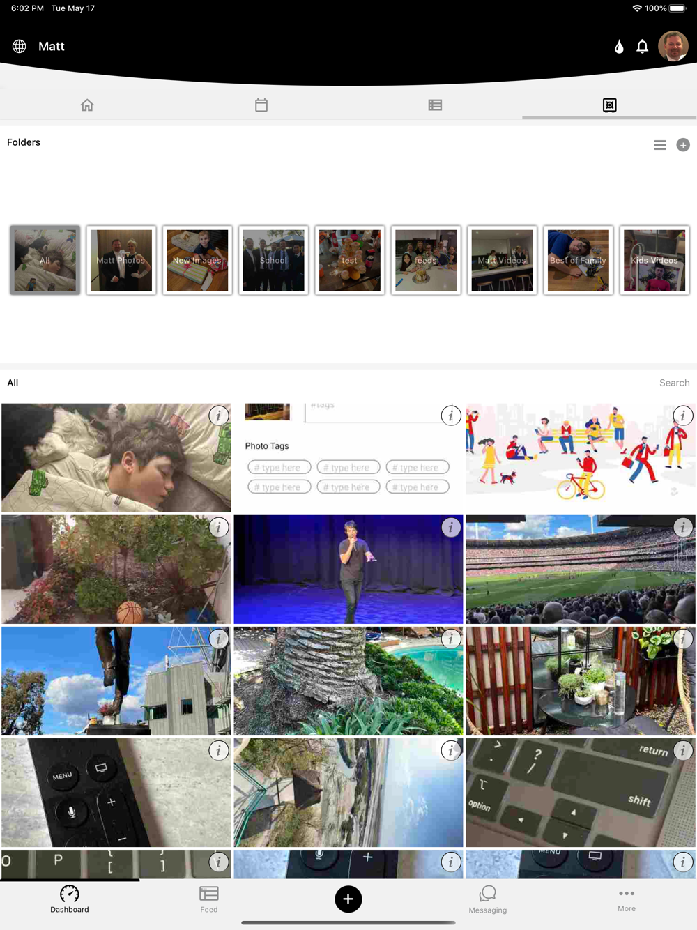 ALL USERS get their own private space to manage their calendar, images, videos, lists.