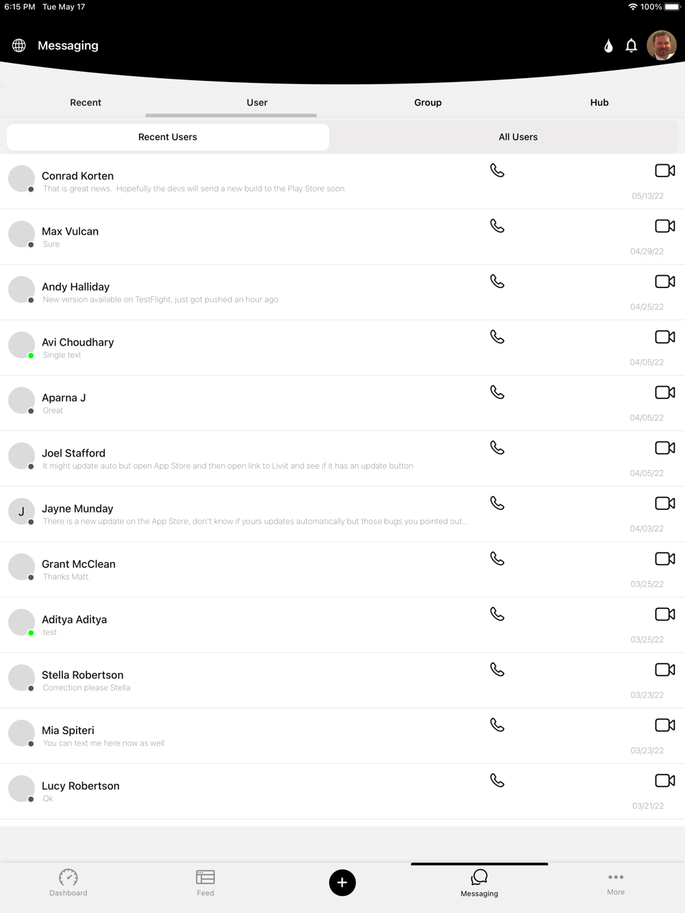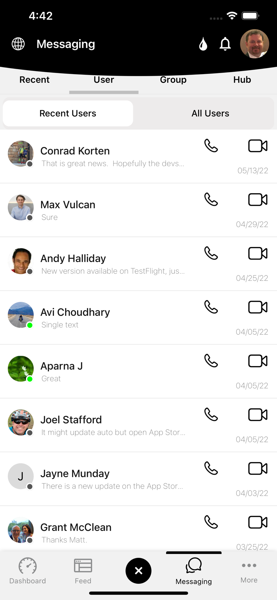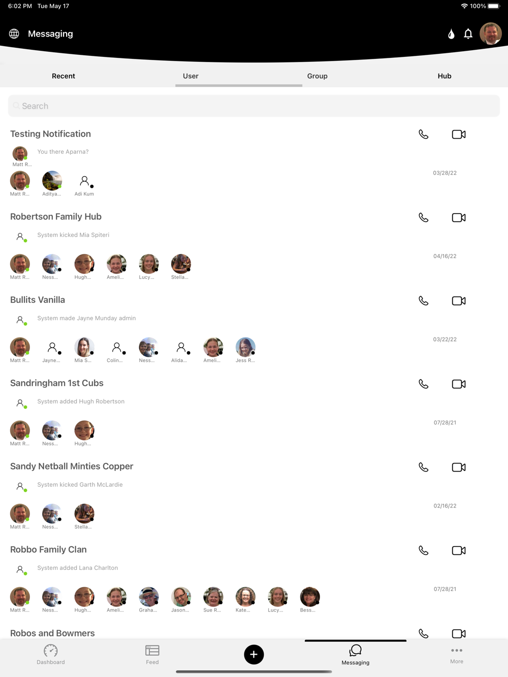 MESSAGING & CHAT – User to User and Group together with Hub Chat