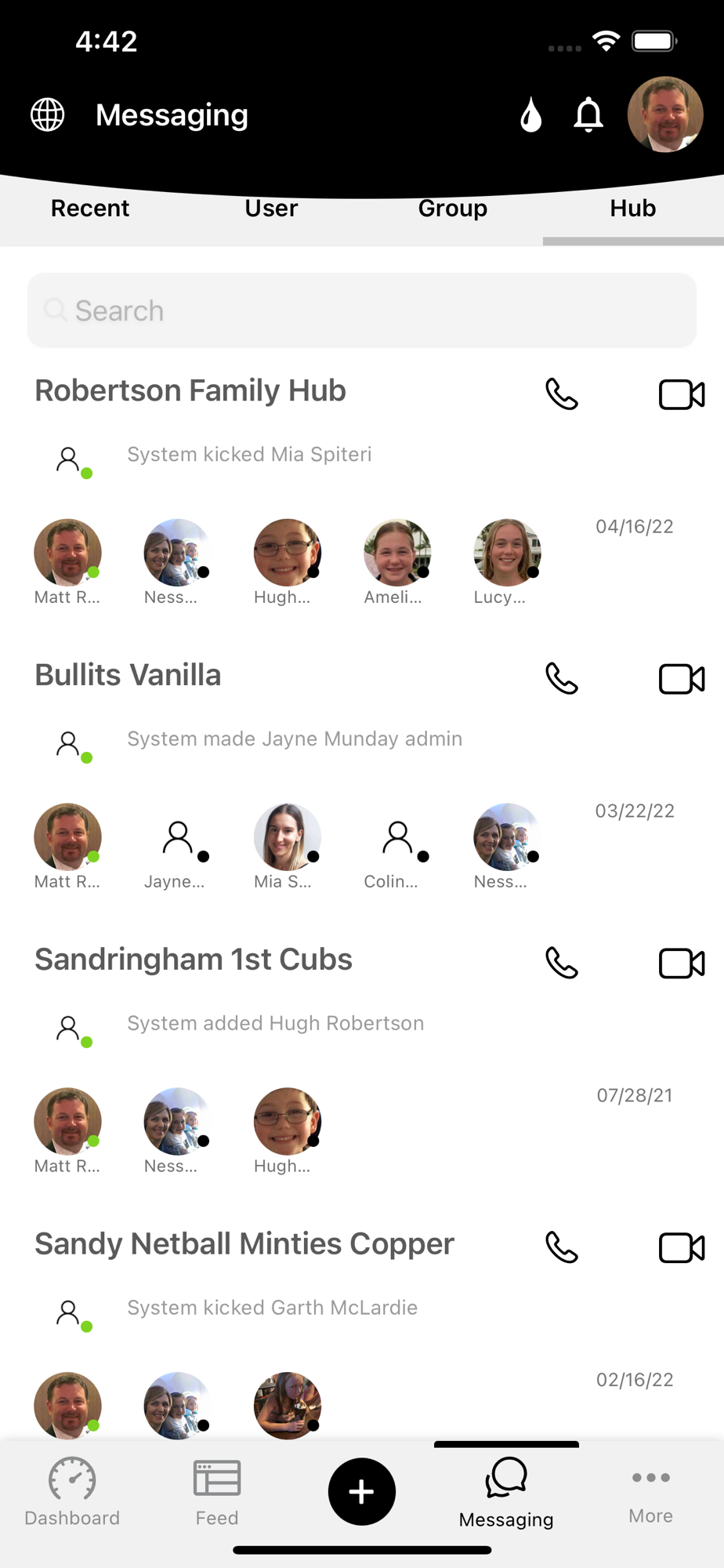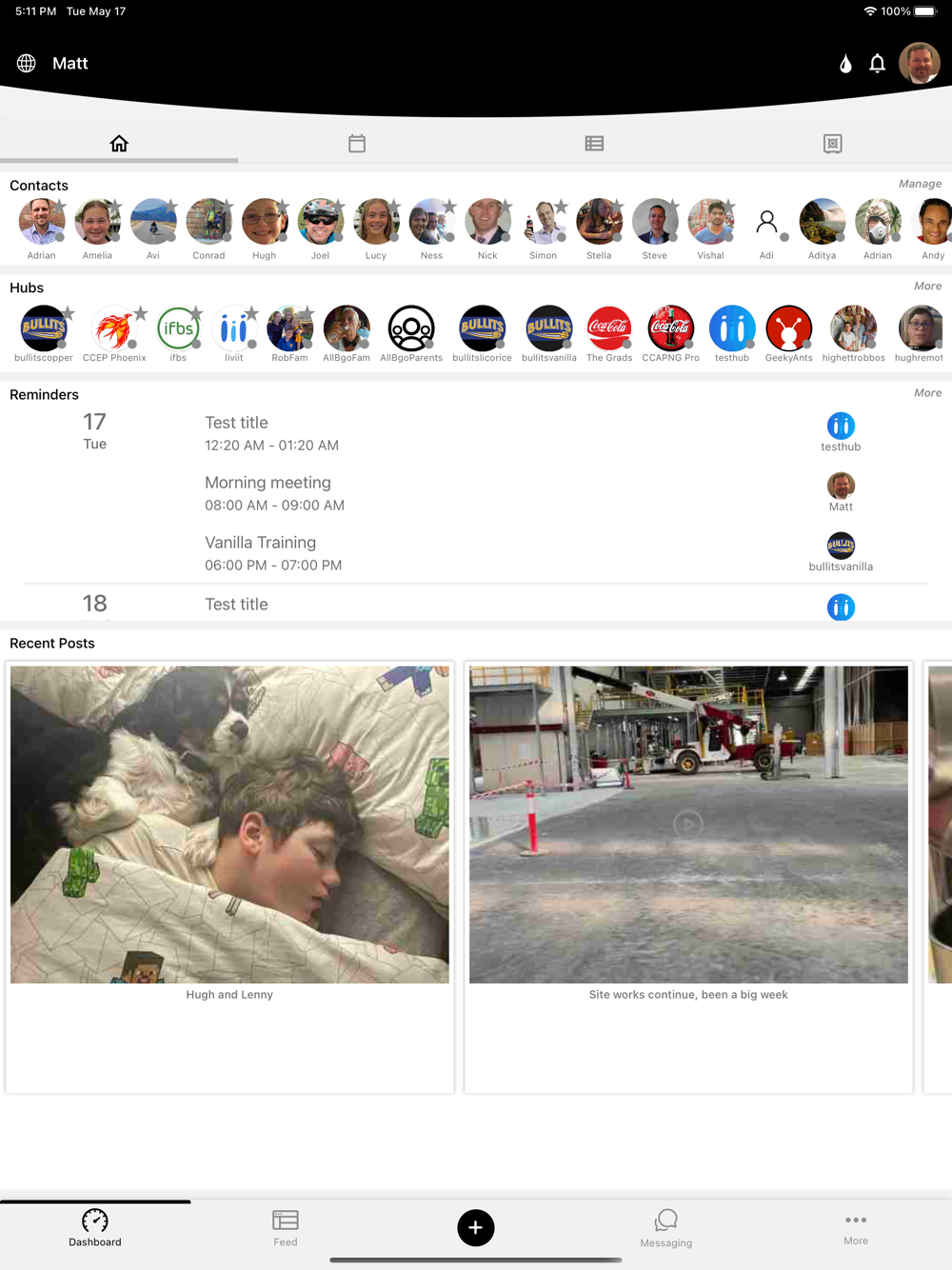 Hubs are groups that are managed by administrator(s). Each Hub has the same base features including Private Feed, Hub Chat, Hub Calendar and Hub Vault (images, videos and files). Typical applications of Liviit Hubs are: