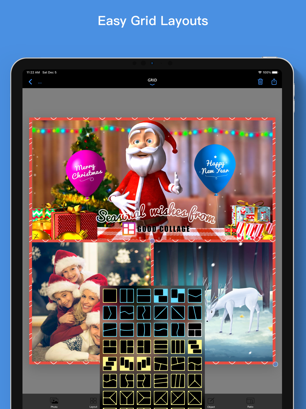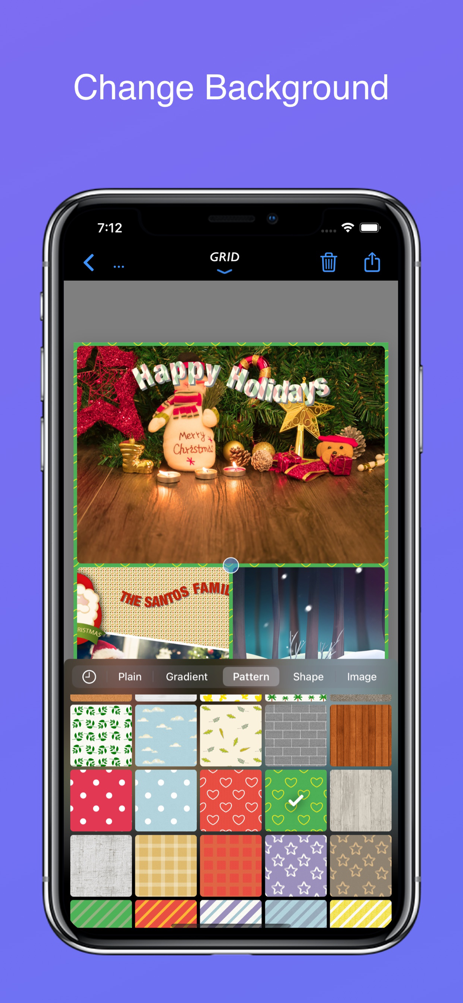 Choose from hundreds of photo grids, exclusive stickers, and festive background patterns.