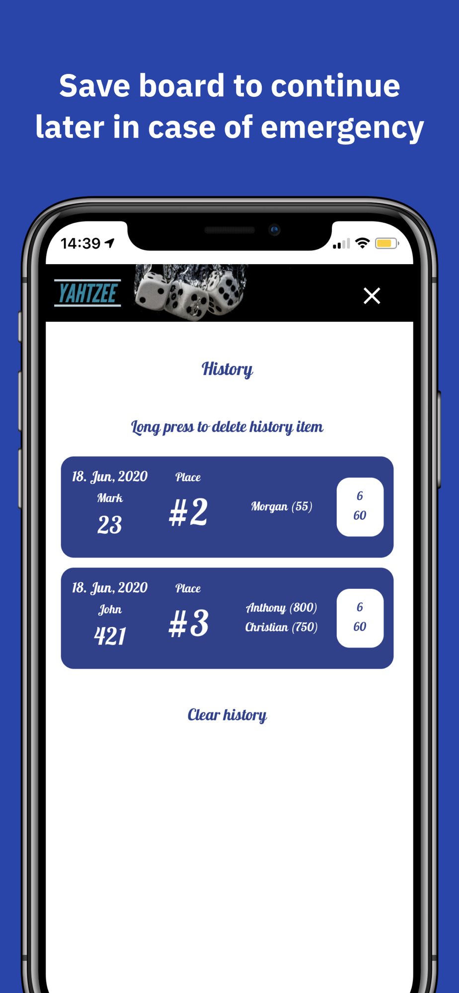 Yamb (Yahztzee, Yamb, Yatzie) score sheet is an app for taking scores in popular dice game. Goal of this app is to track your Yamb triumphs and to save paper (ecological aspect).