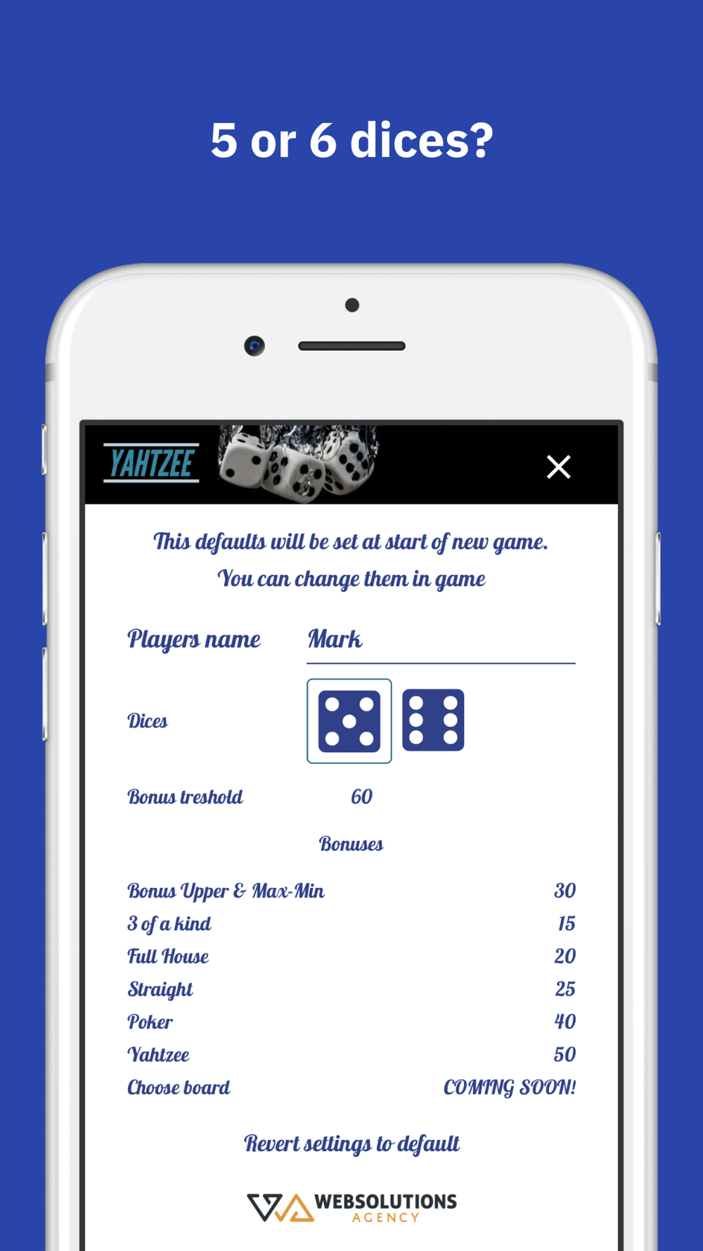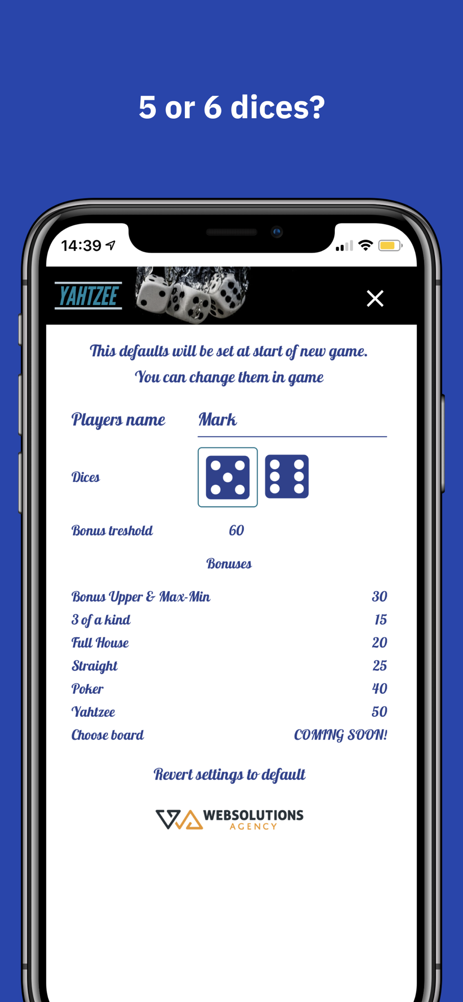 We don’t throw dice for you! You’ll need your own set of dice!