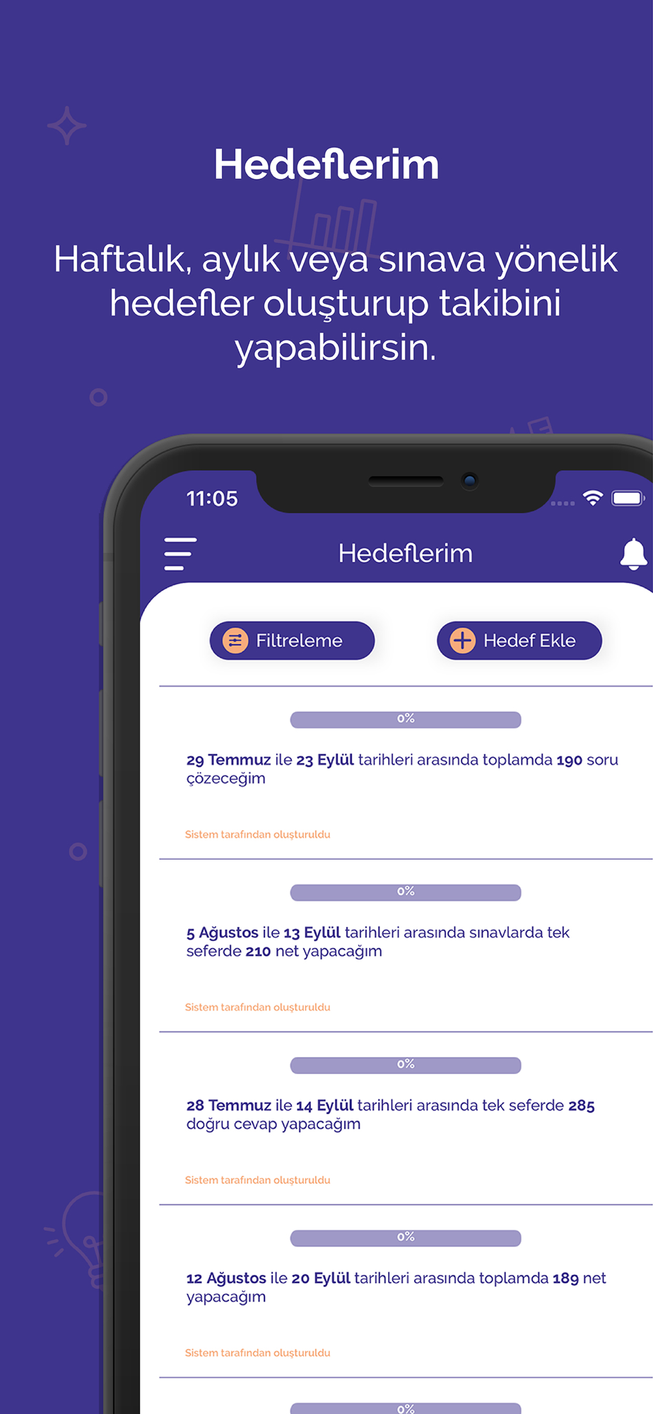 Planda lise ve üniversite sınavlarına hazırlanan gençler için hazırladığımız yapay zeka temelli bir uygulamadır. Siz Planda’ya hedefinizi söylersiniz; planda sizin mevcut durumunuzutespit eder ve kişiye özel bir ders çalışma programı hazırlar. Zamanınızı ve enerjinizi en verimli şekilde kullanmanızı sağlar. Planda bünyesinde çok sayıda konu tarama ve deneme sınavları bulundurur. Girdiğiniz sınavlar sonucunda size güncel puanlarınızı ve durumunuzu gösterir, konu eksikliklerinizi tespit ederek ayrıntılı bir rapor hazırlar. Planda her dersin ve her konunun sınavdaki önem sırasını bilir. Bu bilgileri ve seviyenizi göz önünde bulundurarak her dersin her konusu için kişiselleştirilmiş soru sayısı ve konu çalışma süresi önerir. Böylece hedefinizle uyumlu stratejik ders çalışma programınız hazırlanmış olur. Planda veri girişlerinizi yaptığınız takdirde rozet ve puan kazandırır, bu rozetleri arkadaşlarınızla paylaşabilmenizi sağlar. Planda sınava hazırlık süreciniz boyunca sizi hiçbir zaman yalnız bırakmaz ve günlük geri bildirimleri ile her zaman yanınızdaki en büyük destekçiniz olur