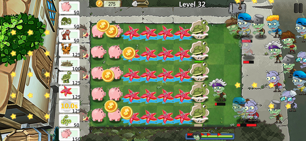 One day, terrible zombies try to invade your home. You need to form a powerful animals team to defeat them. You have a variety of animals with different capabilities.