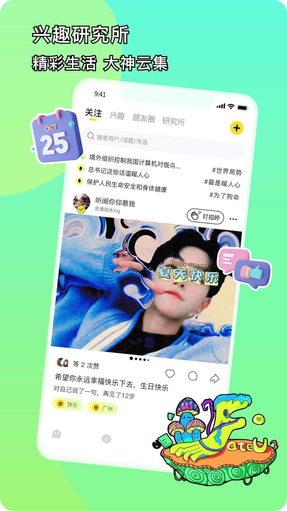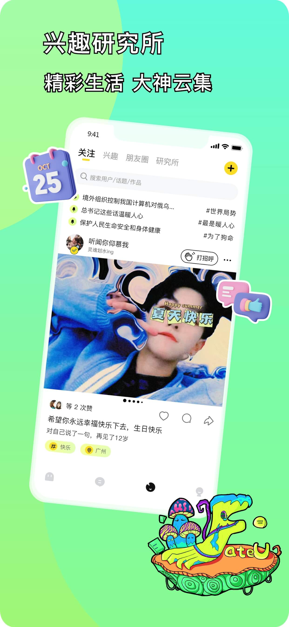 -在「兴趣」结识各圈大牛,探索各类文化,从「研究所」挖掘当下好玩的一切,「回归」同基因群体