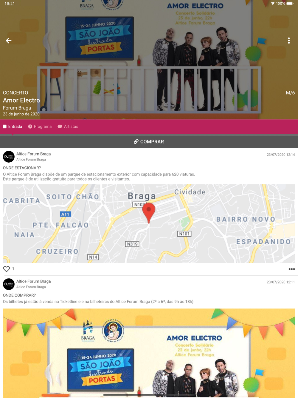 Bilhetes – Aceda aos seus bilhetes em formato digital e obtenha uma entrada célere no evento usando o seu telemóvel.
