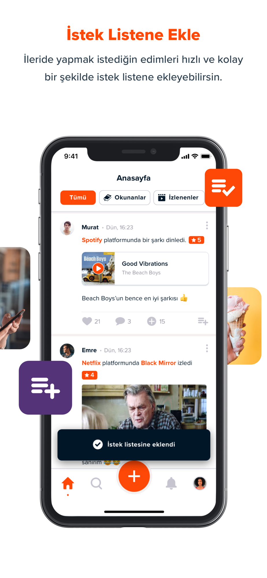 İleride deneyimlemek istediğin edimleri hızlı ve kolay bir şekilde istek listene ekle.