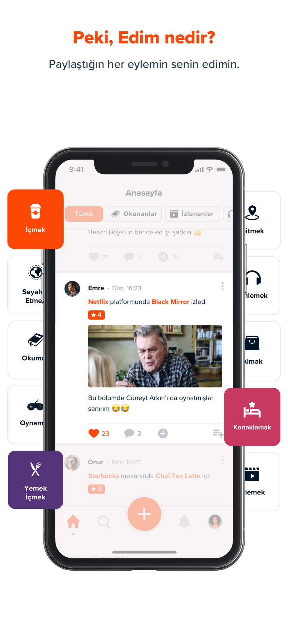 Yediğin yemeği, okuduğun kitabı, izlediğin filmi, gittiğin etkinliği, dinlediğin şarkıyı, oynadığın oyunu, aldığın ürünü edimle.