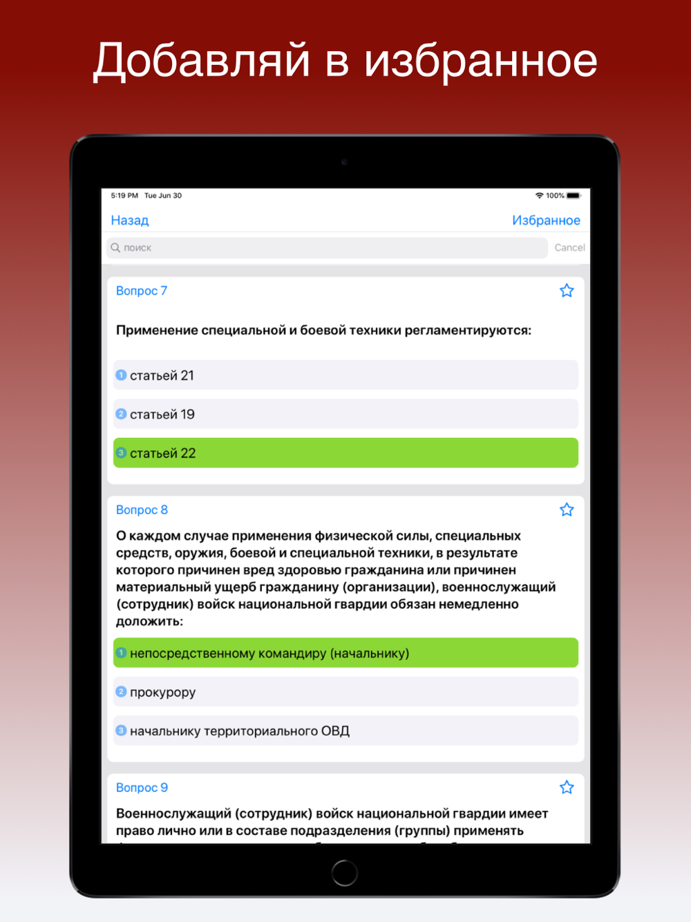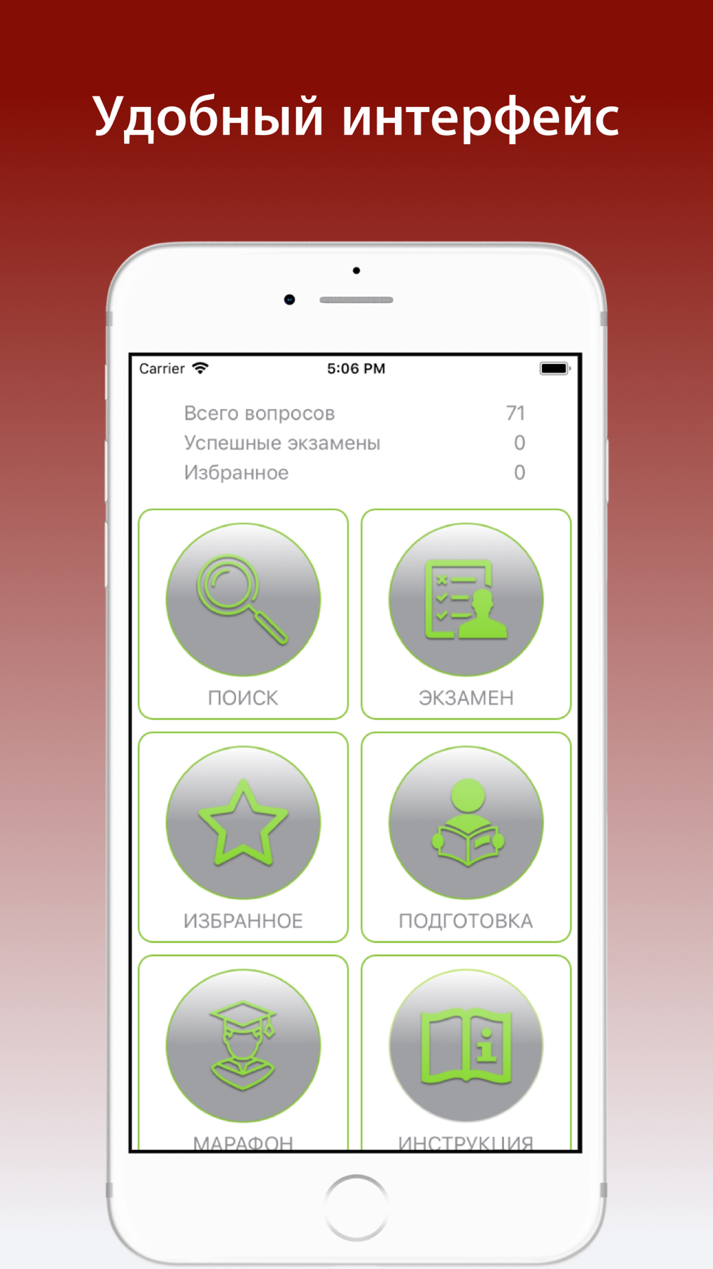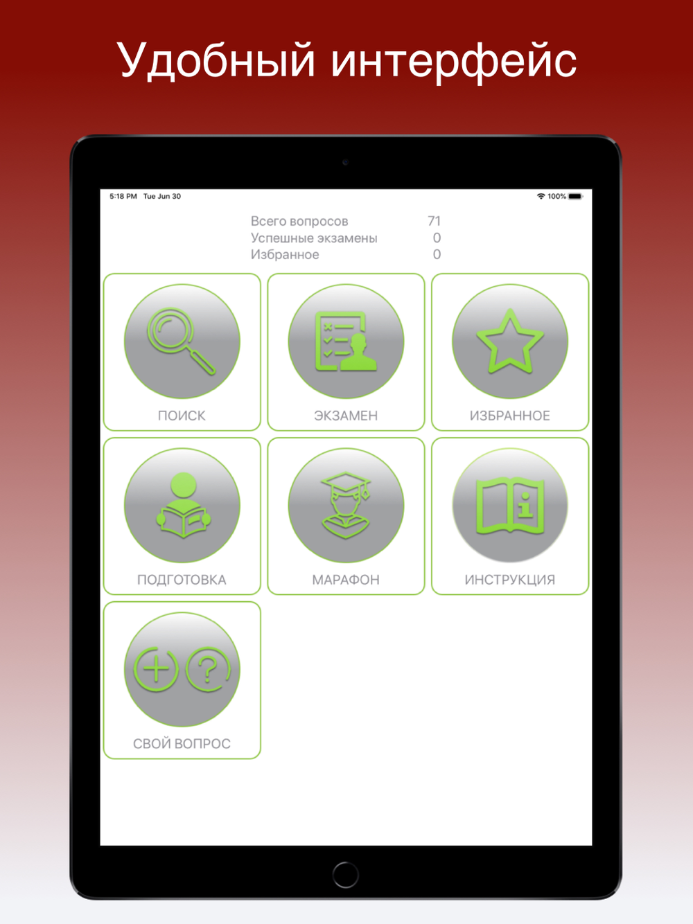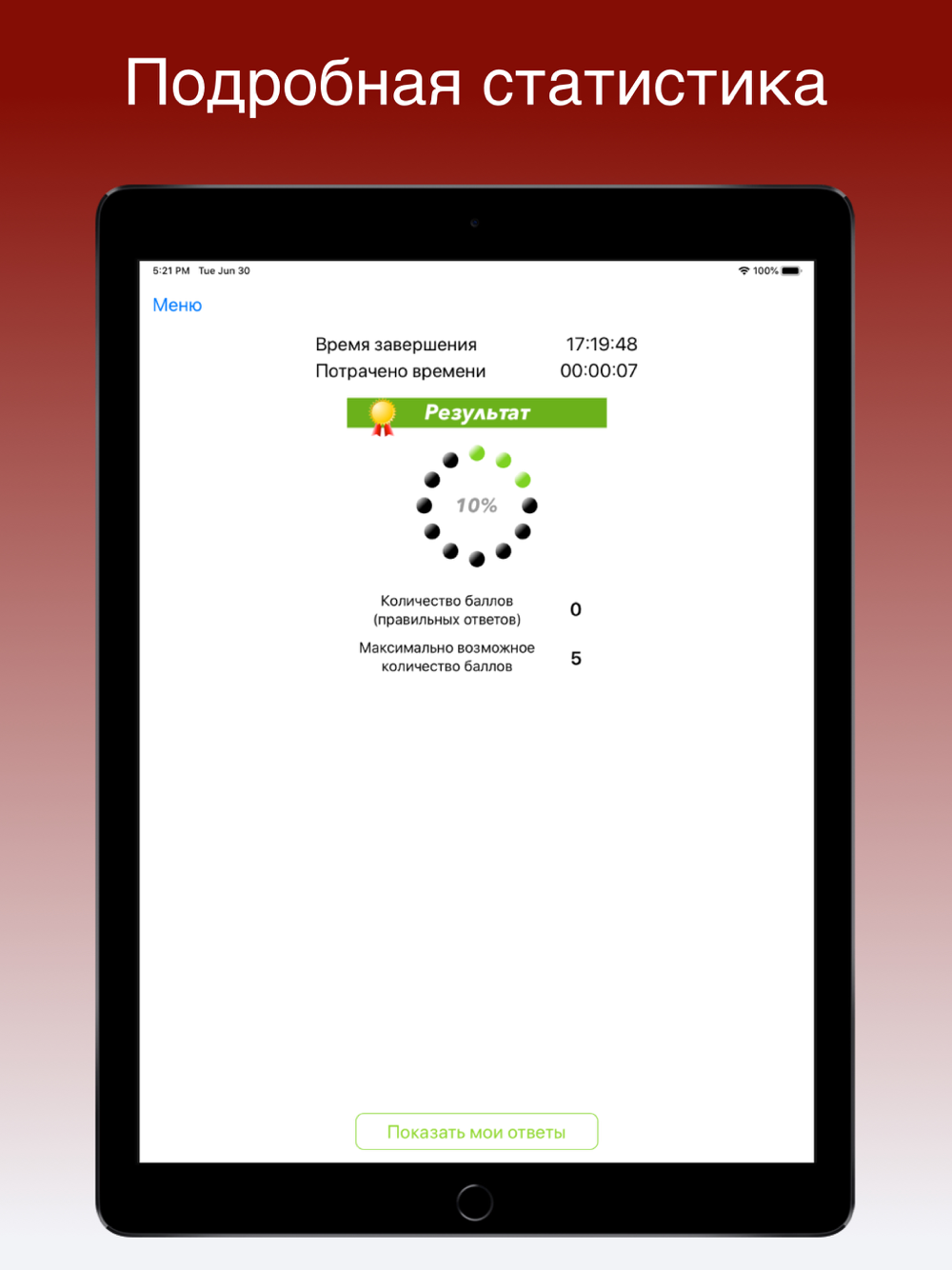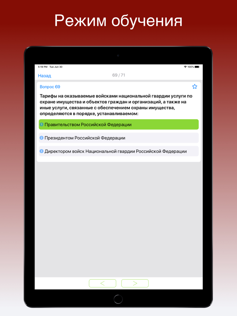 • Подготовка - Позволяет изучить вопросы в текстовом формате с отмеченными правильными ответами;