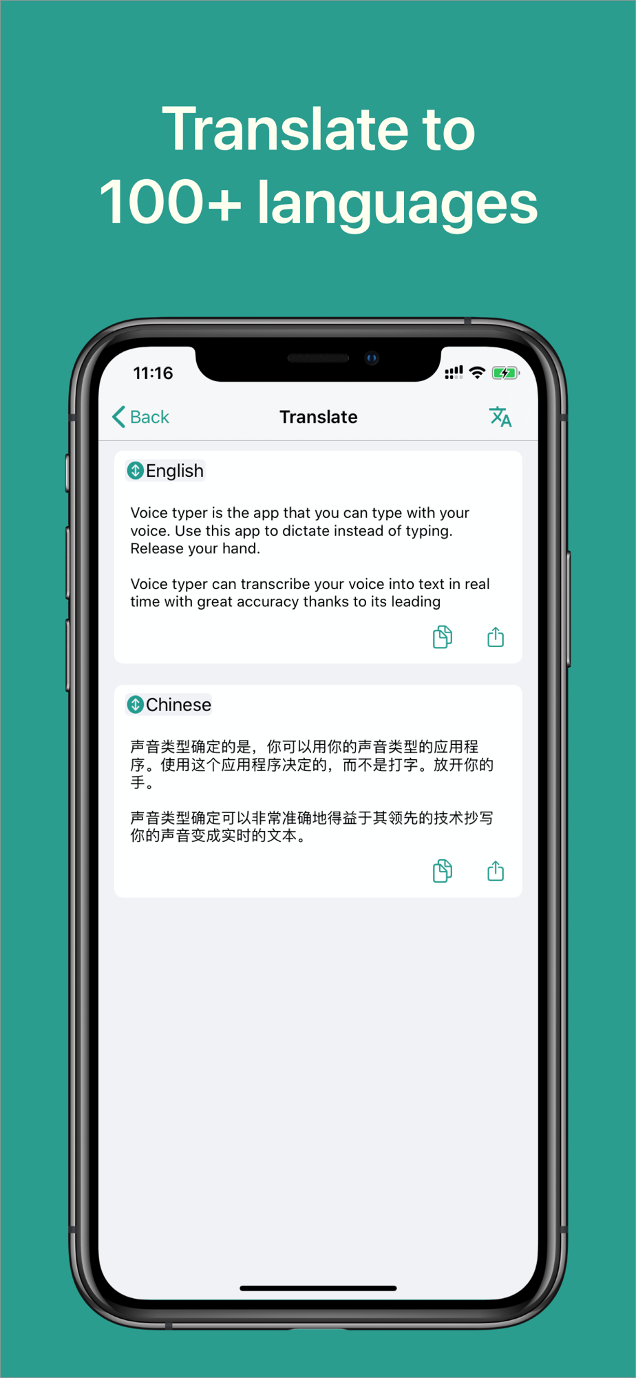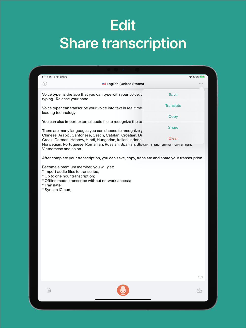 Voice Transcriber is the app that you can type with your voice. Use this app to dictate instead of typing. Release your hand.