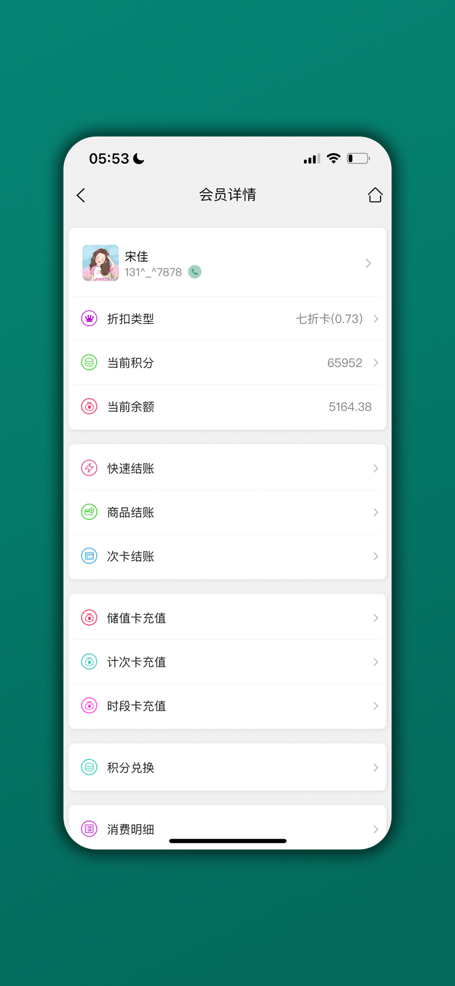 余额查询,余次查询,积分查询,消费查询,充值查询,领取优惠,查收通知,自助预约...