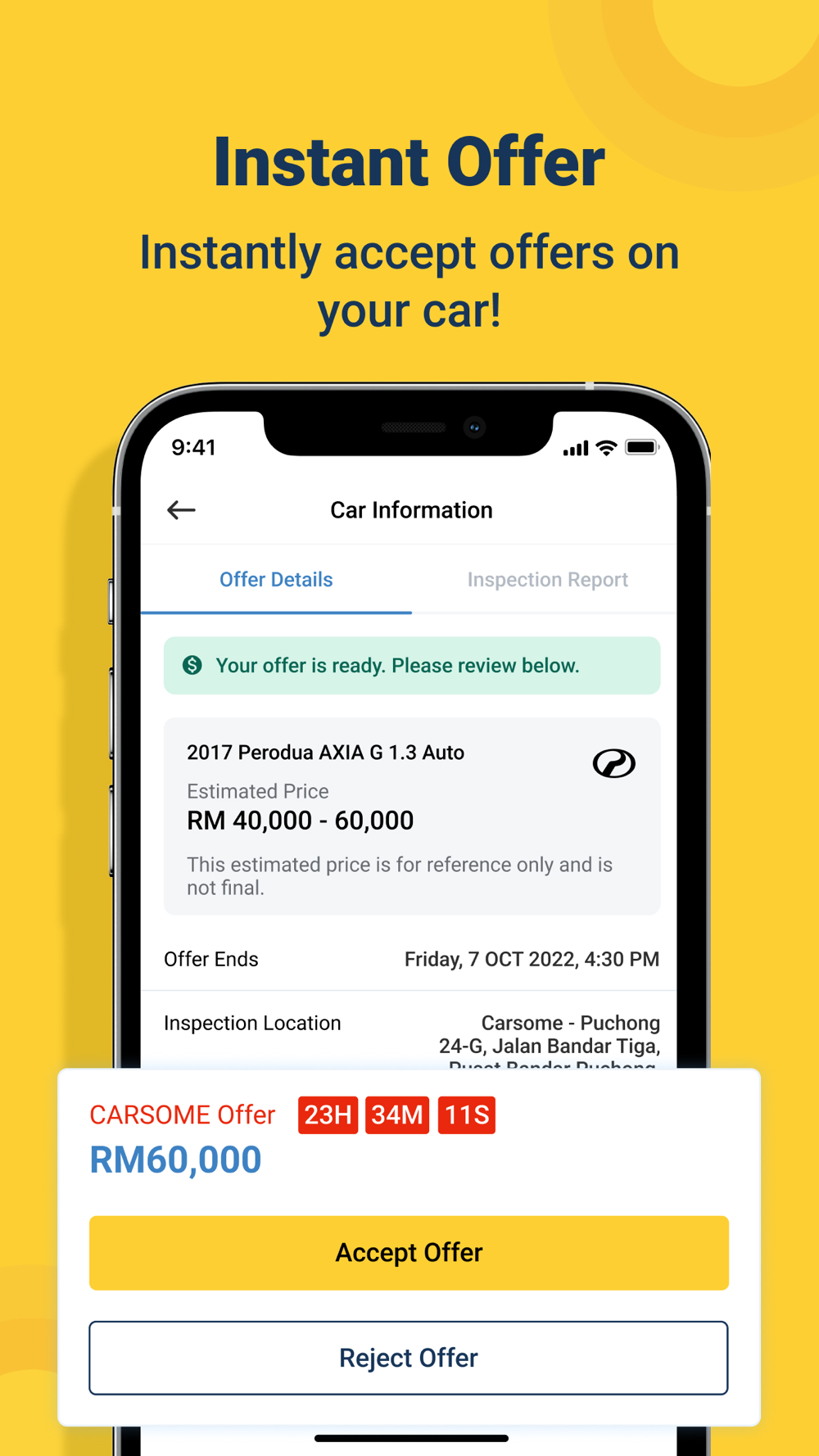Then get this CARSOME CARagent app, built exclusively for registered CARSOME Sales Agents.With this one-stop app, everything you need is at your fingertips. From making car inspection appointments to receiving real-time offers and commission pay-out updates, you can do it all anytime anywhere!