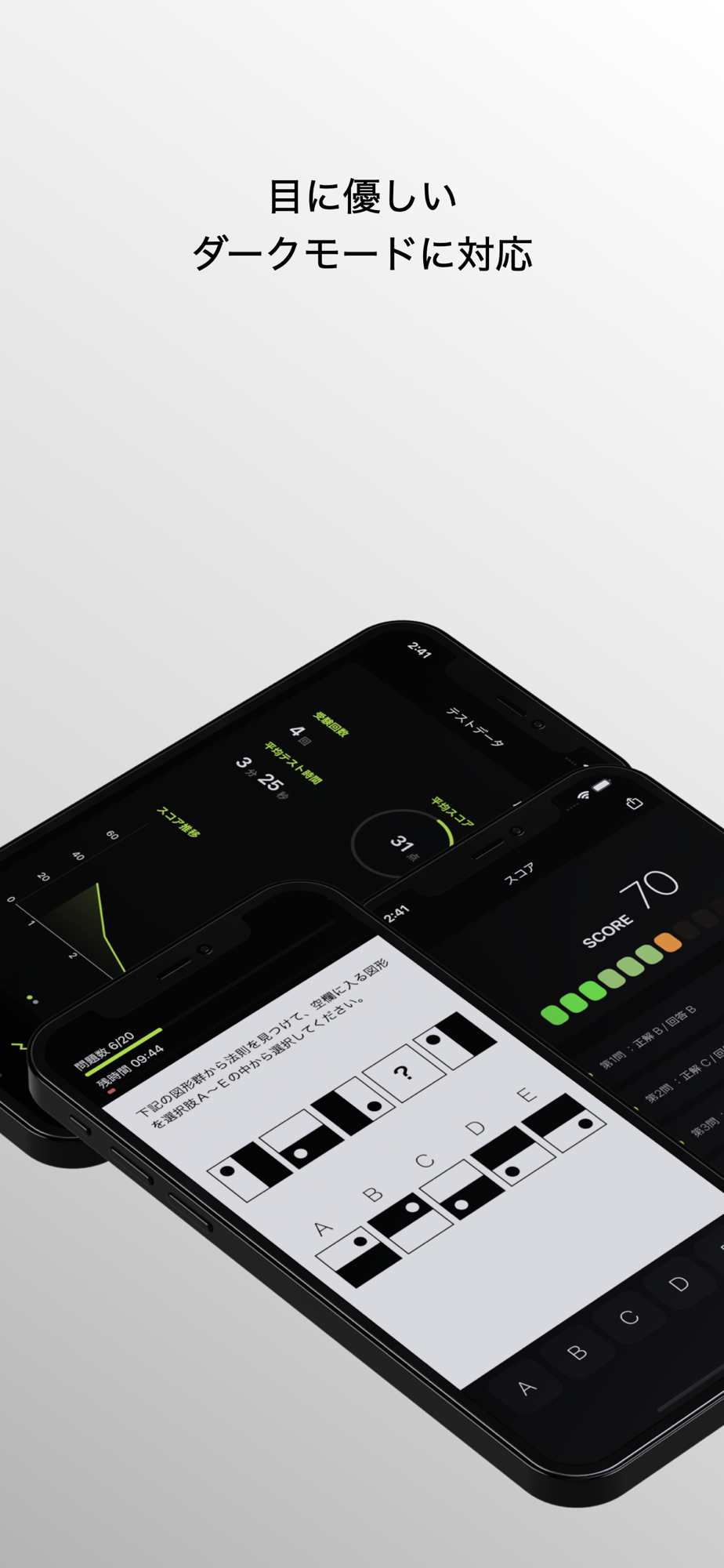 学習モードとテストモードの学習ステータスを分析し、数値やグラフを用いて効率的な学習をサポートします。
