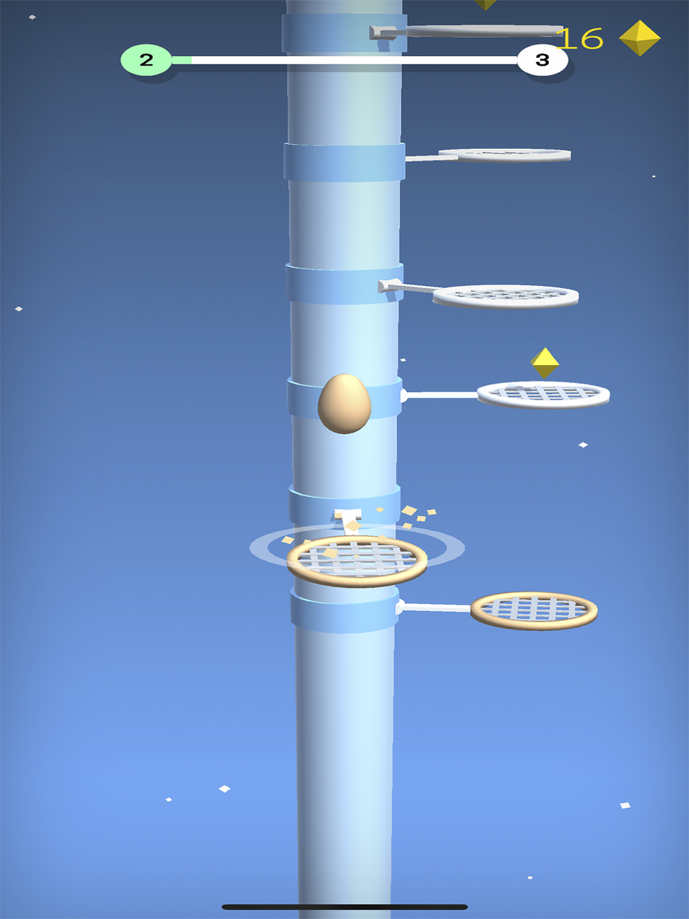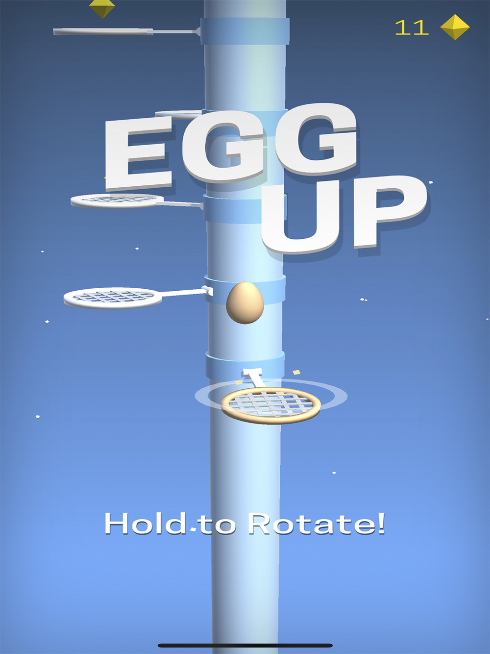 To get your egg to the top, jump from platform to platform. Some platforms have red bounce pads allowing the egg to jump much higher. Some platforms contain diamonds that the player can collect while bouncing to the top of the level.