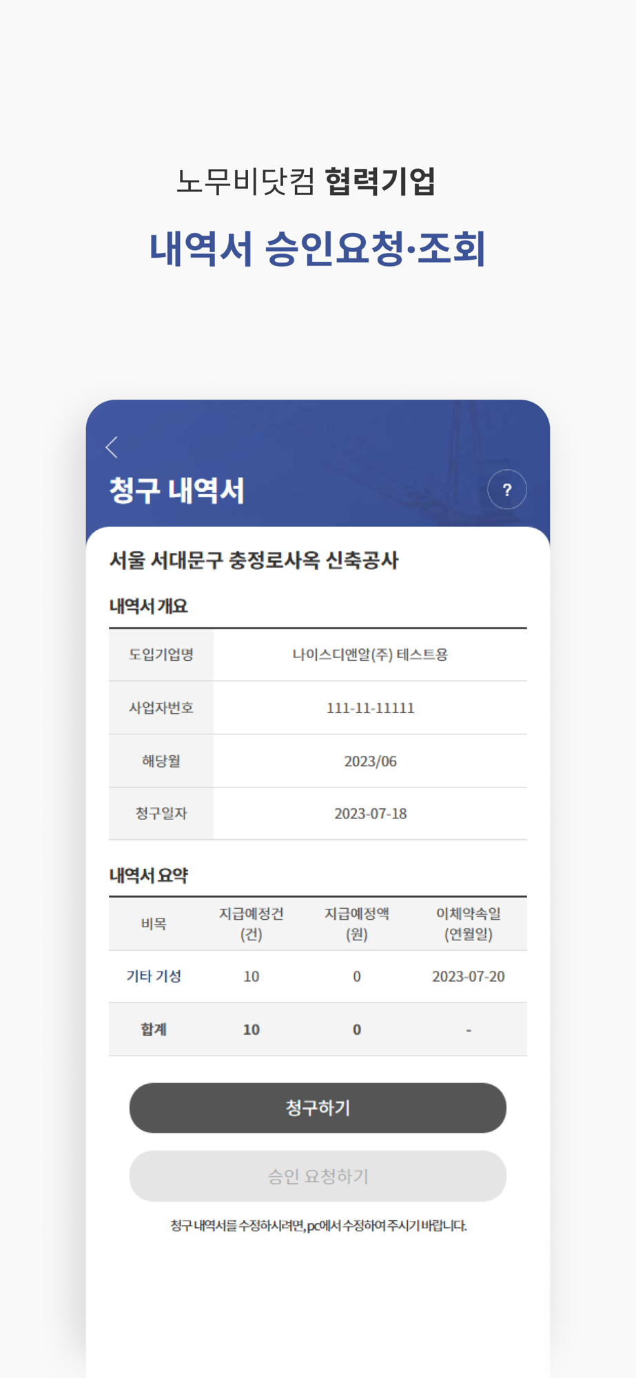 · 청구 된 내역에 대한 승인요청 푸쉬알림 발송