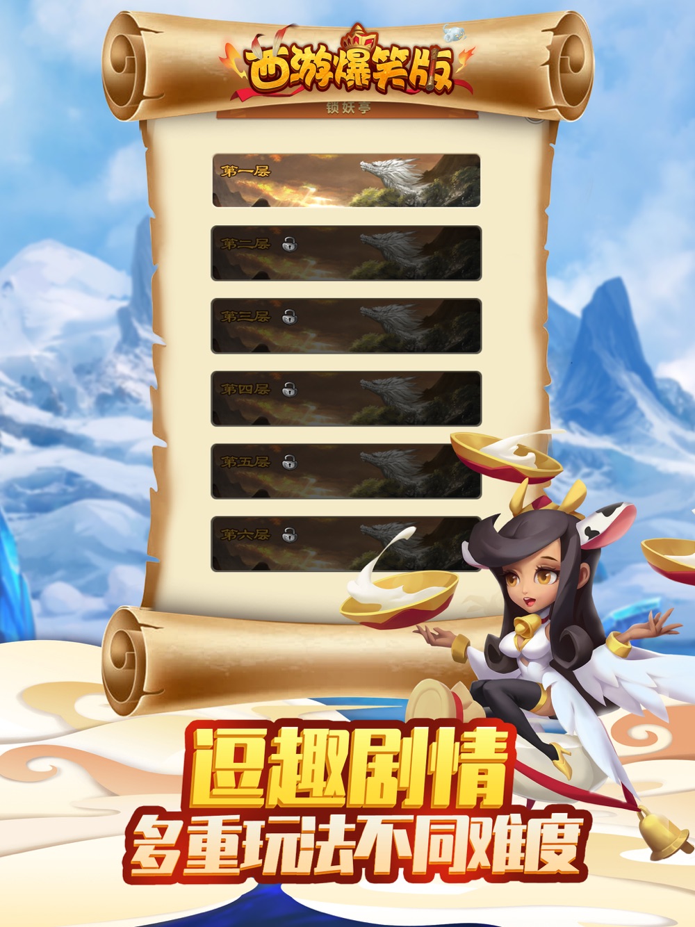 《西游爆笑版》是一款以诸神为题材的大型策略卡牌Q版回合制游戏。在异域的神界,你将化身于命运之子,召唤经典东方神仙,悟空,唐僧等,更有西方诸神,奥丁、雅典娜伴你左右。游嘻神界,你还在等什么。