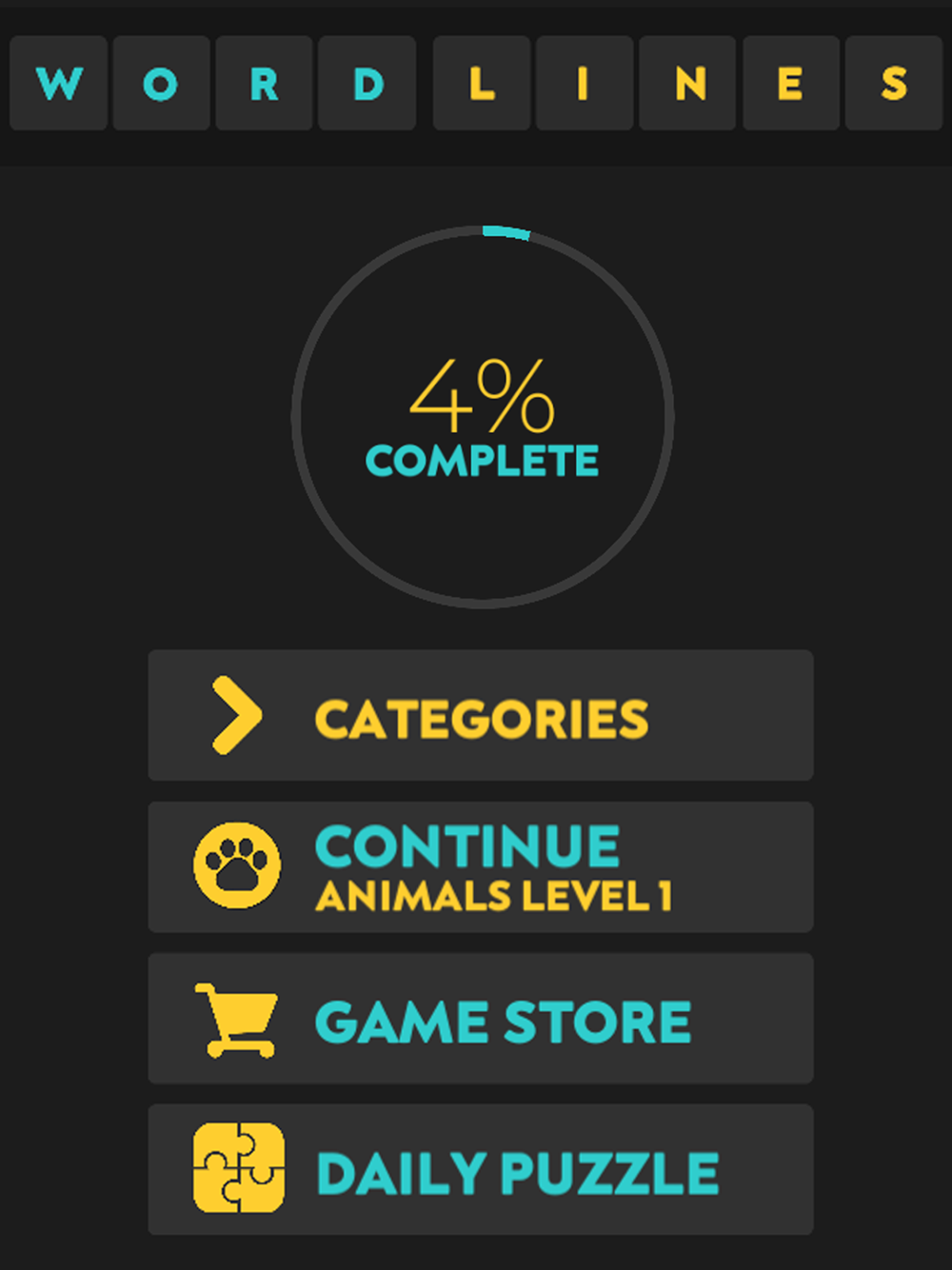 LETTER LINES includes 10 category packs of words with each category including 10 levels.
