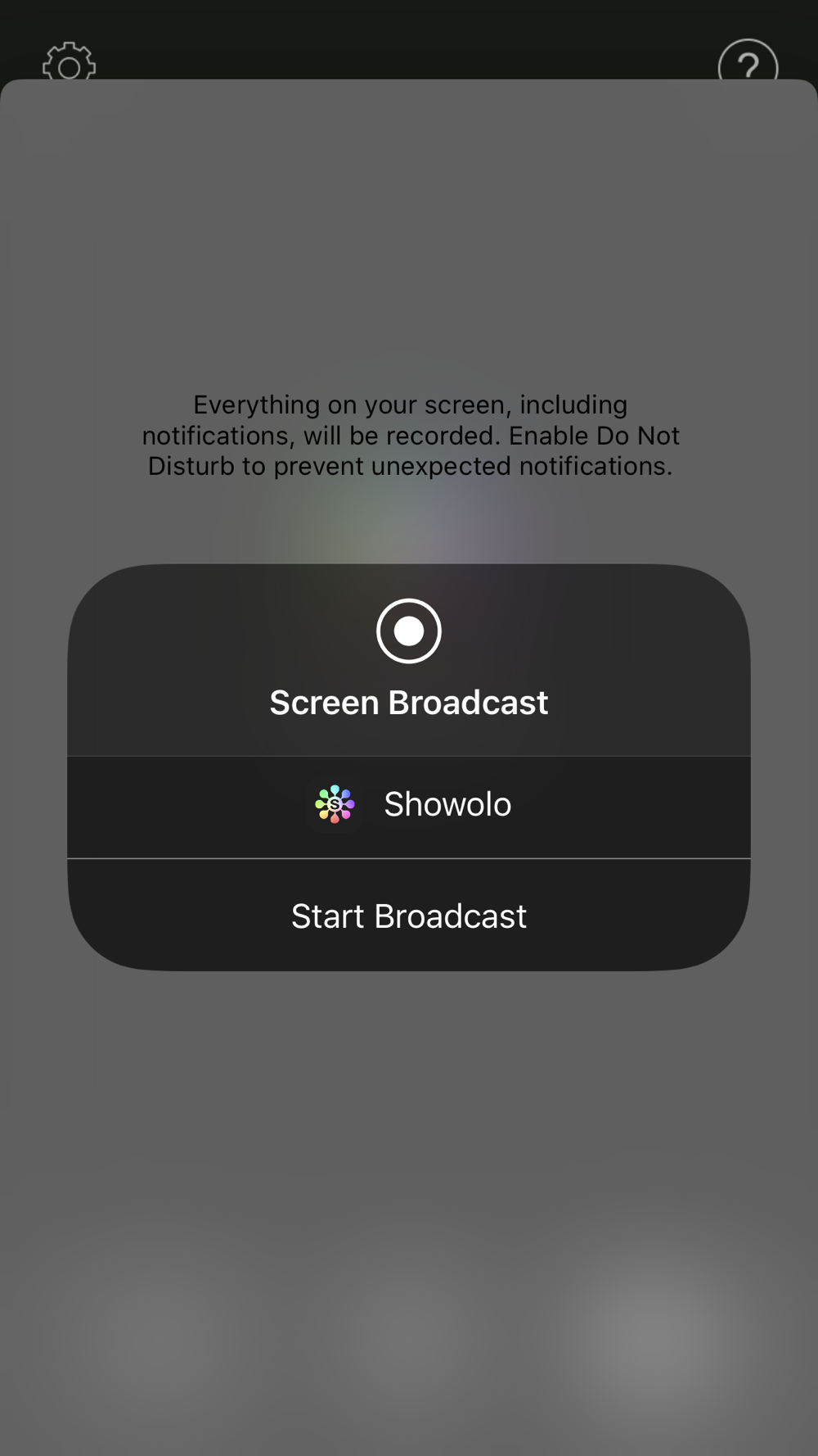 2. Enter the control center, long press the record button, select Showolo and click Start button