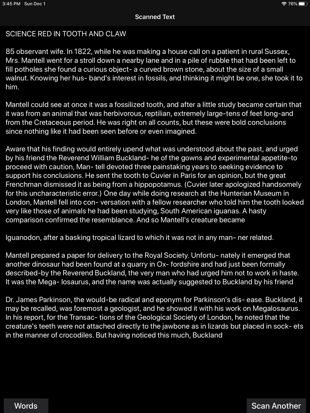 Users can also combine/merge multiple scanned texts in the order they select, and edit and share the scanned texts.