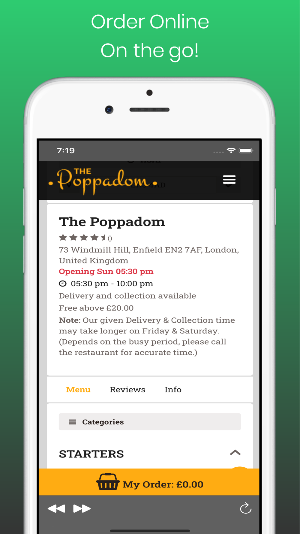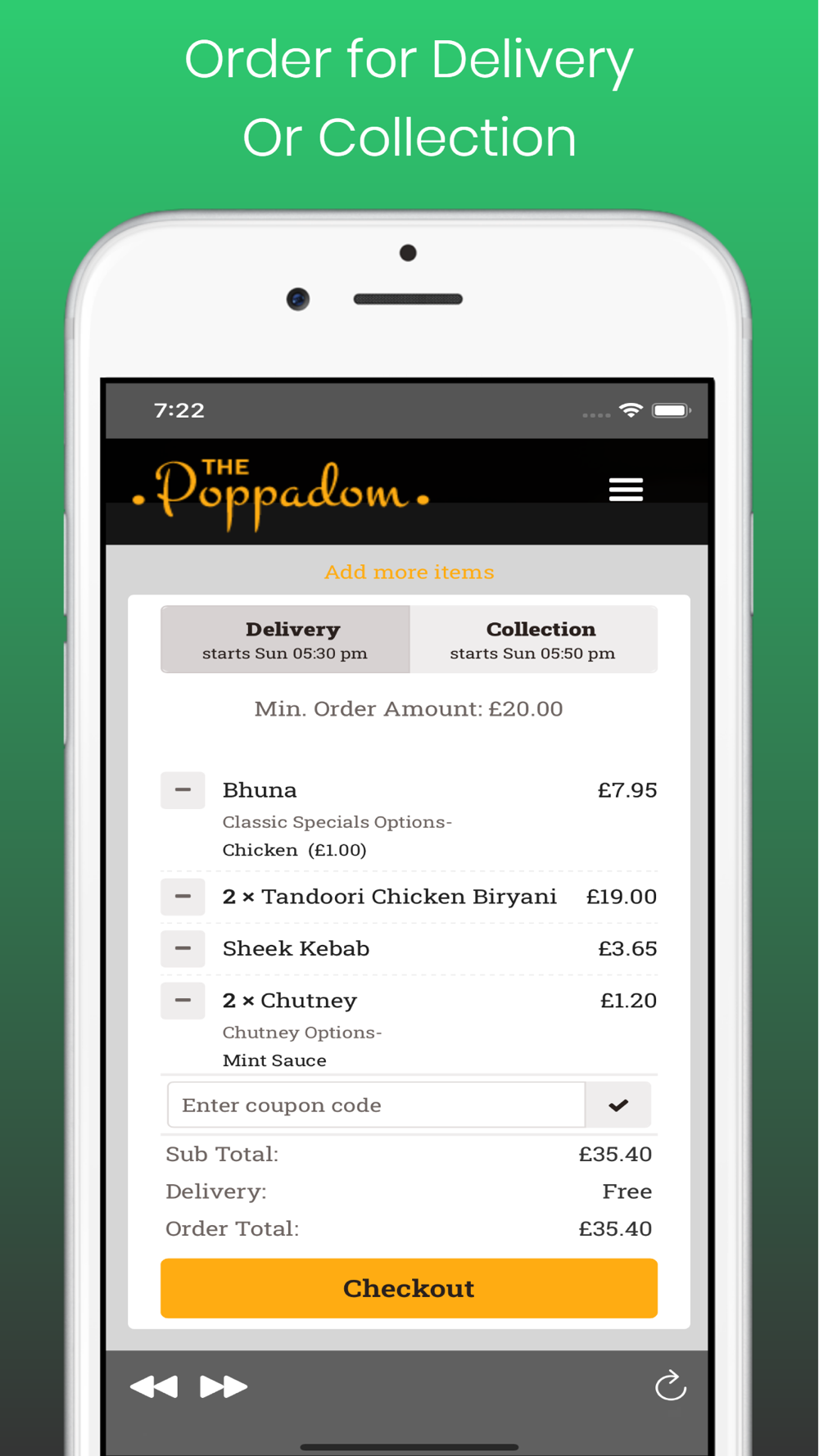 - Delivery or Collection Order option
