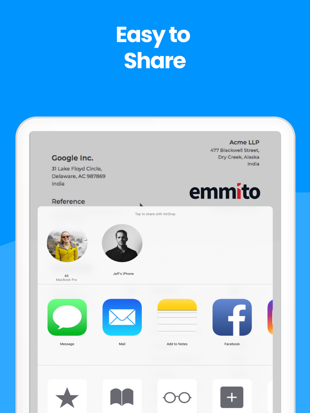 due dates, company logo, discounts, shipping details, tax details and more. Deliver via email, text print or share in multiple options. With Invoizy you can keep your business finances organized. Send the invoice before you leave the customer!