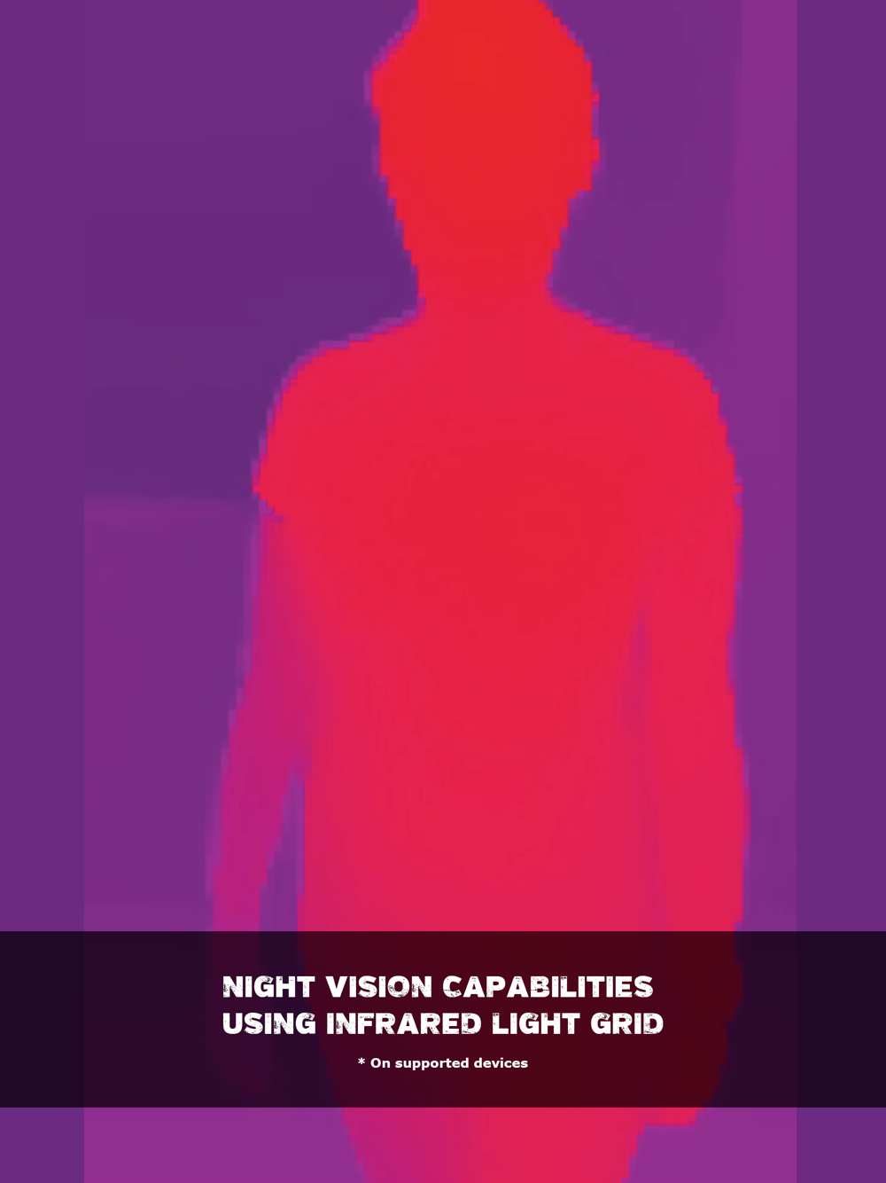 On devices equipped with Apple's LiDAR technology, GhostTube SLS Camerauses a projected grid of infrared light to detect depth and see in the dark. Our complex algorithms use the depth data to detect people and people shaped objects with accuracy that surpasses that of the Kinect SLS cameras. For devices lacking LiDAR, the app will instead rely on dual lens cameras to measure depth in a similar way to how the human eye detects depth.