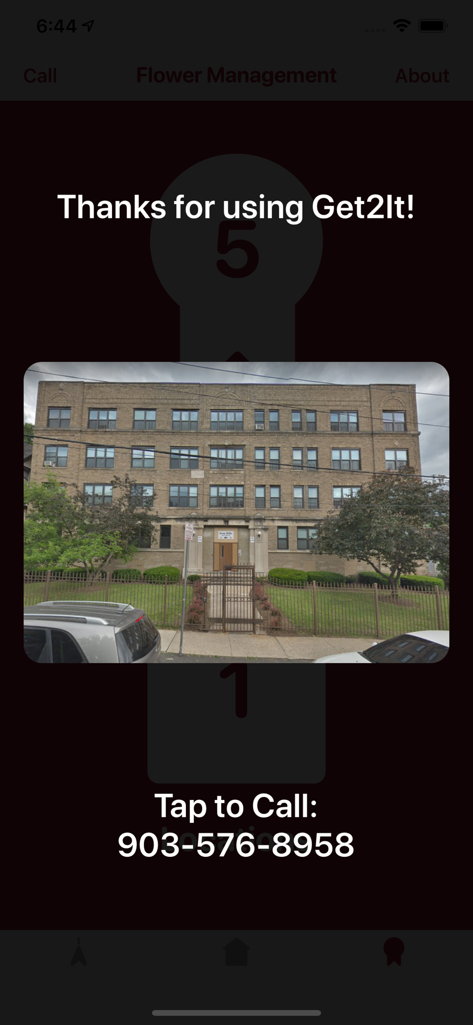 Eliminate delivery delays! Do you make deliveries to Flower MGMT properties? If so, this app is for you. This app automatically navigates you to the property of your choice and then can automatically call the receiver. No more calling wrong numbers. No more waiting around. FREE