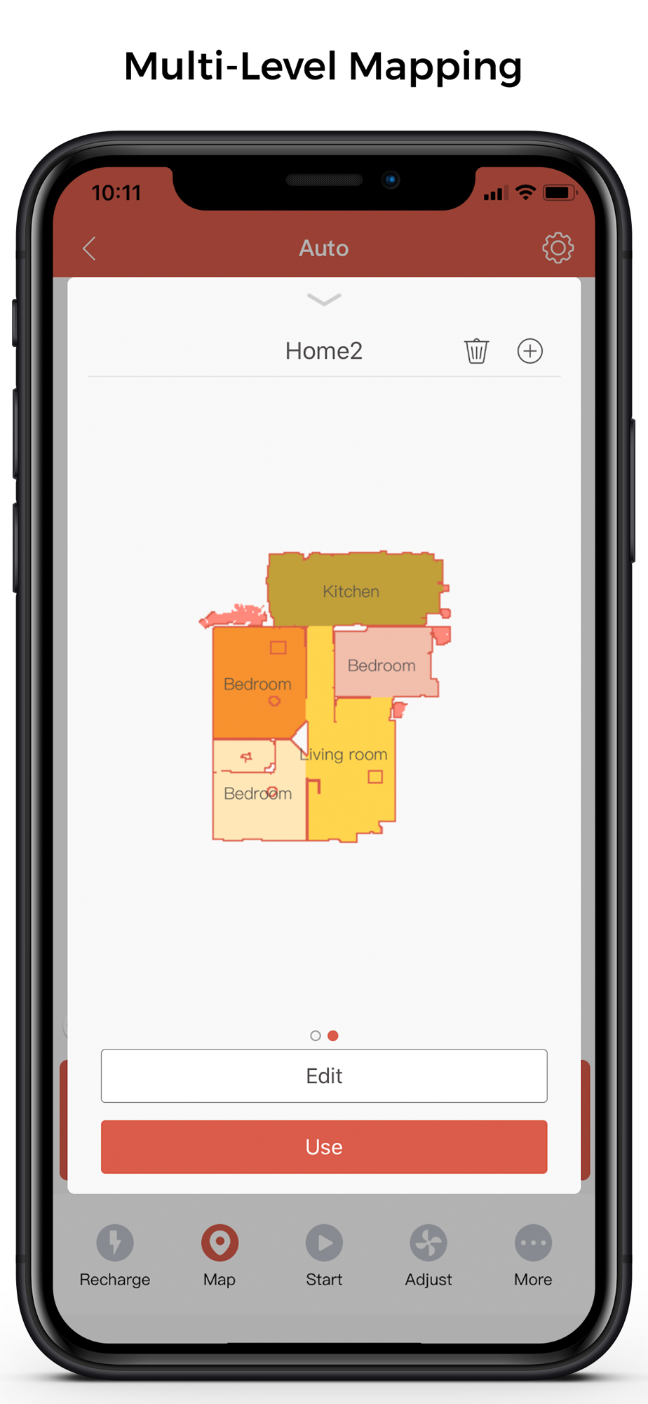 1. Multi-level mapping. This APP can save up to 5 different floor plans which is ideal for multiple-level houses and helps when you easily switch between different rooms to clean.