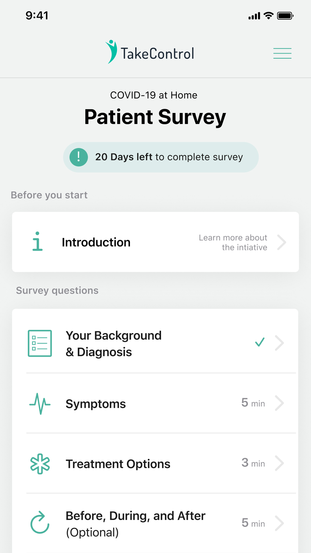 This is a mobile app in support of the at Home Patient Survey. You will only be able to login and utilize this mobile application if you are eligible and have registered. This application is brought to you by iTakeControl, it is designed to allow participants to answer survey questions and submit video responses.