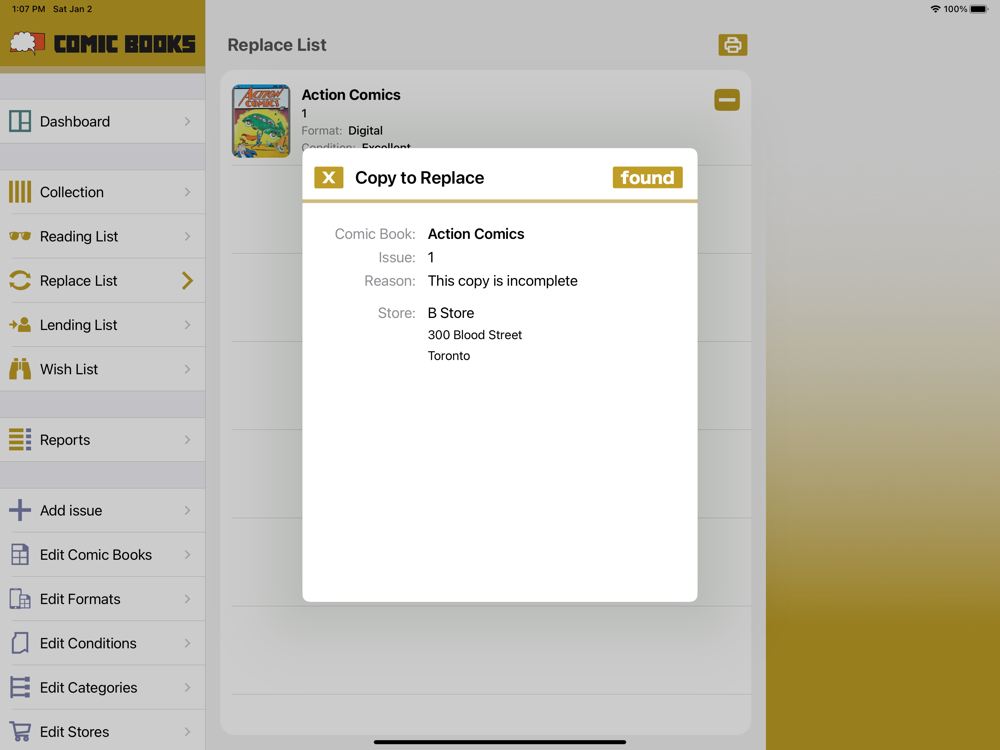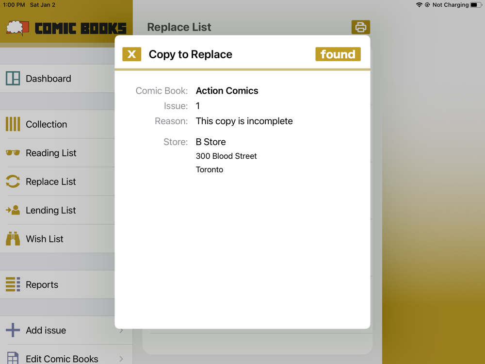 Comic Books Collector helps you keep track of your collection, especially in those moments at the store or the flea market where everything is on sale and you are not sure if you already have that old issue you just found in the dollar bin.