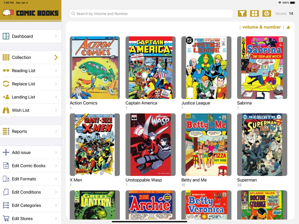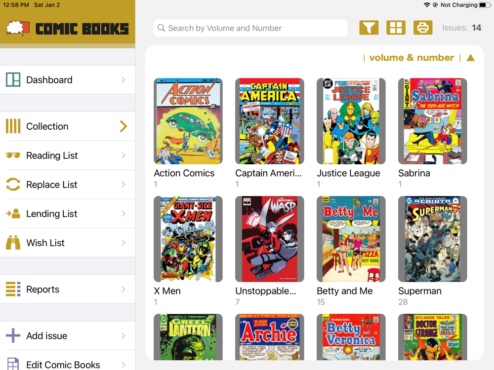 Access your collection from every device, search for a comic book, sort the list by issue or purchase date, and filter the copies by condition or year.
