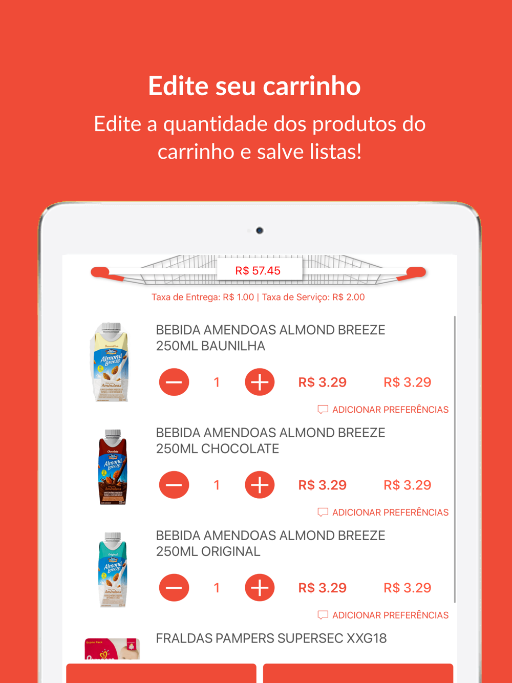 • Adicionar produtos no seu carrinho com um simples tocar e arrastar.