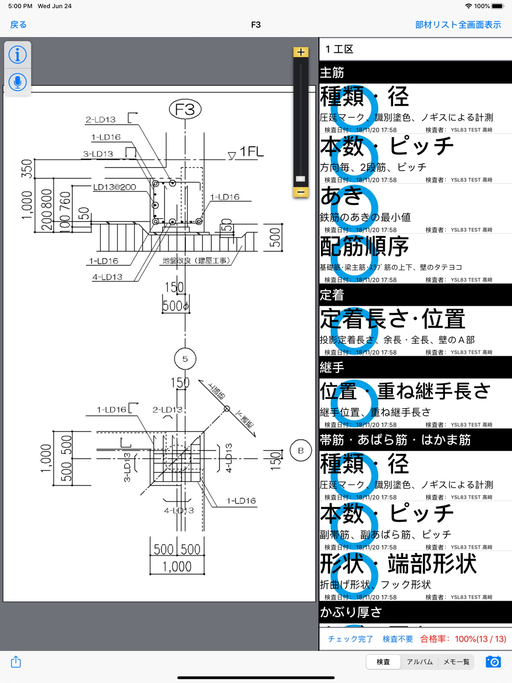 配筋検査をiPadで実施するアプリケーションです。