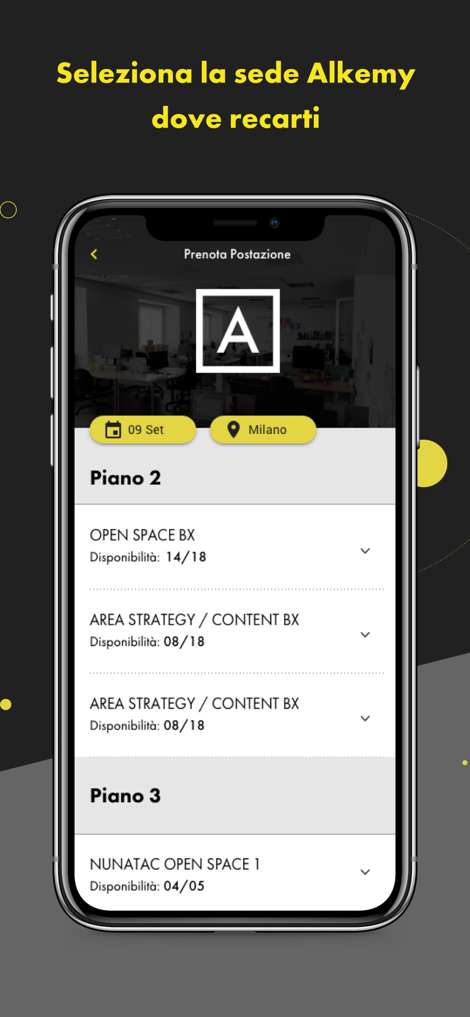 Scarica Alkemy My Desk adesso e inizia a prenotare le tue giornate in ufficio comodamente dal tuo smartphone.