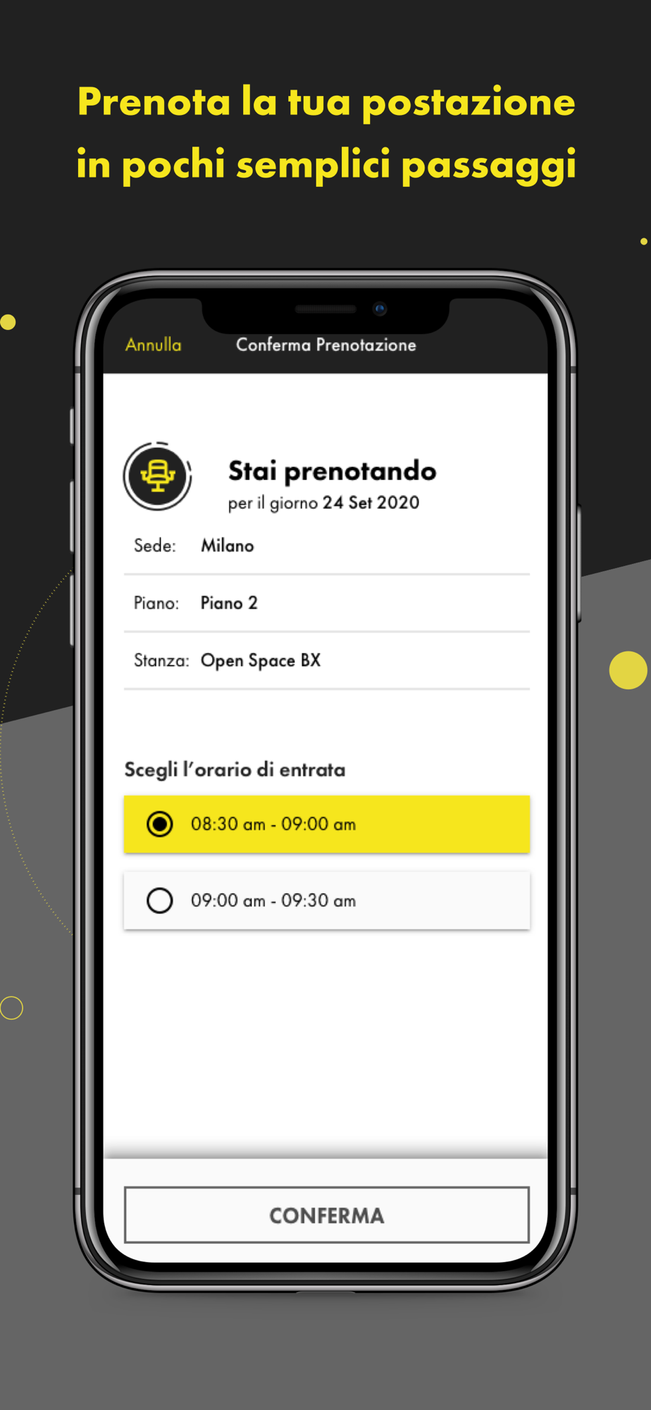 Conferma la prenotazione e ricordati di scansionare il QrCode sulla postazione al tuo ingresso