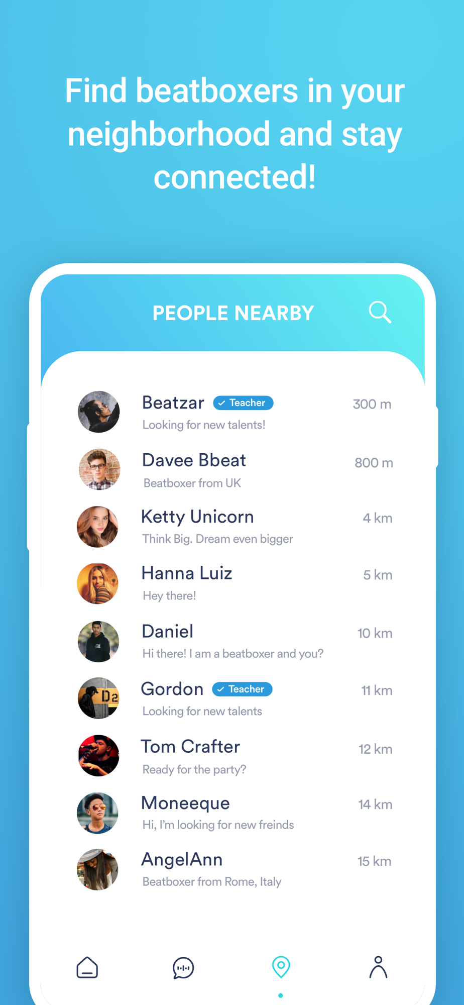 - Take advantage of the nearby function and find beatboxers around you and around the world.