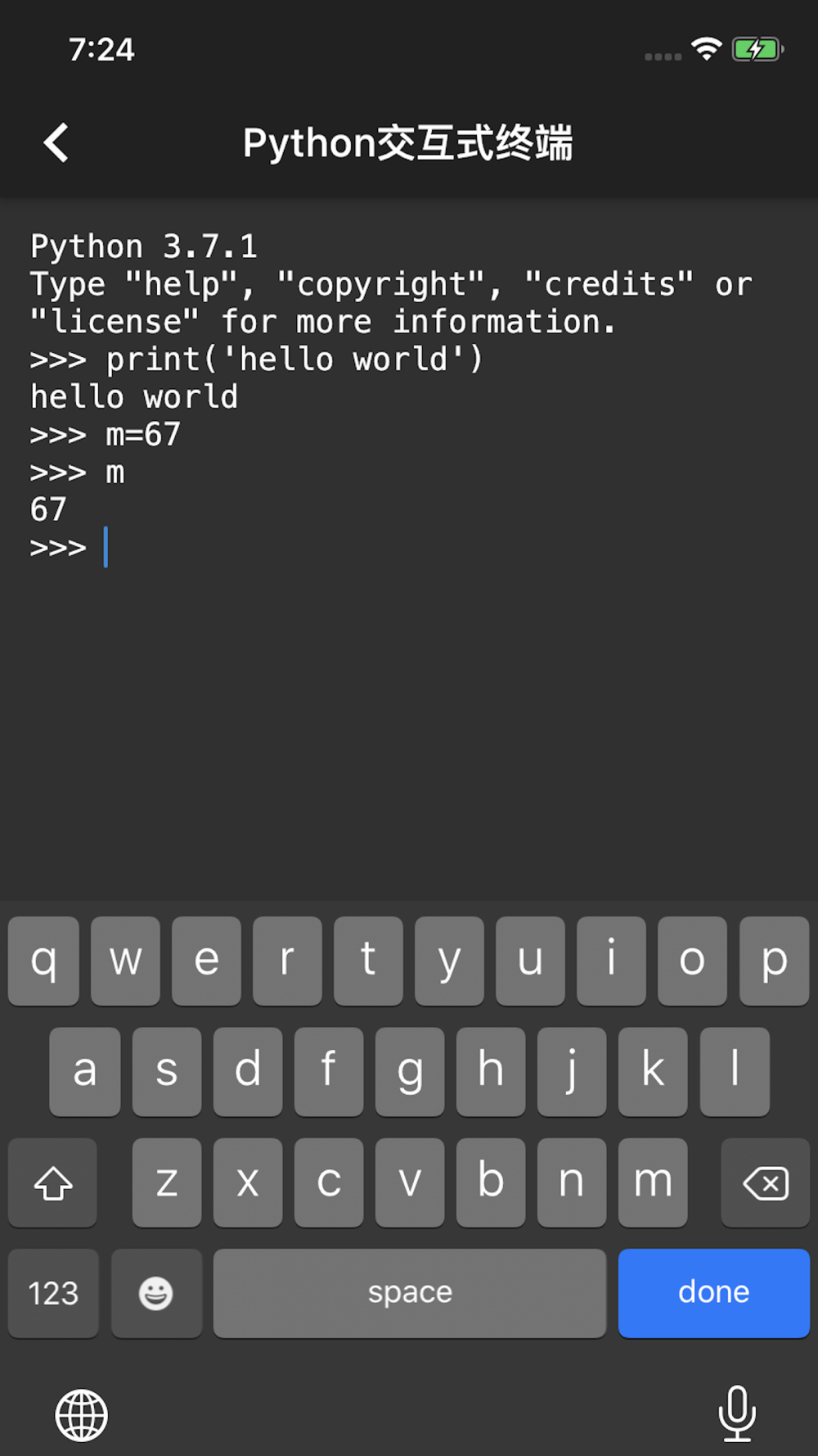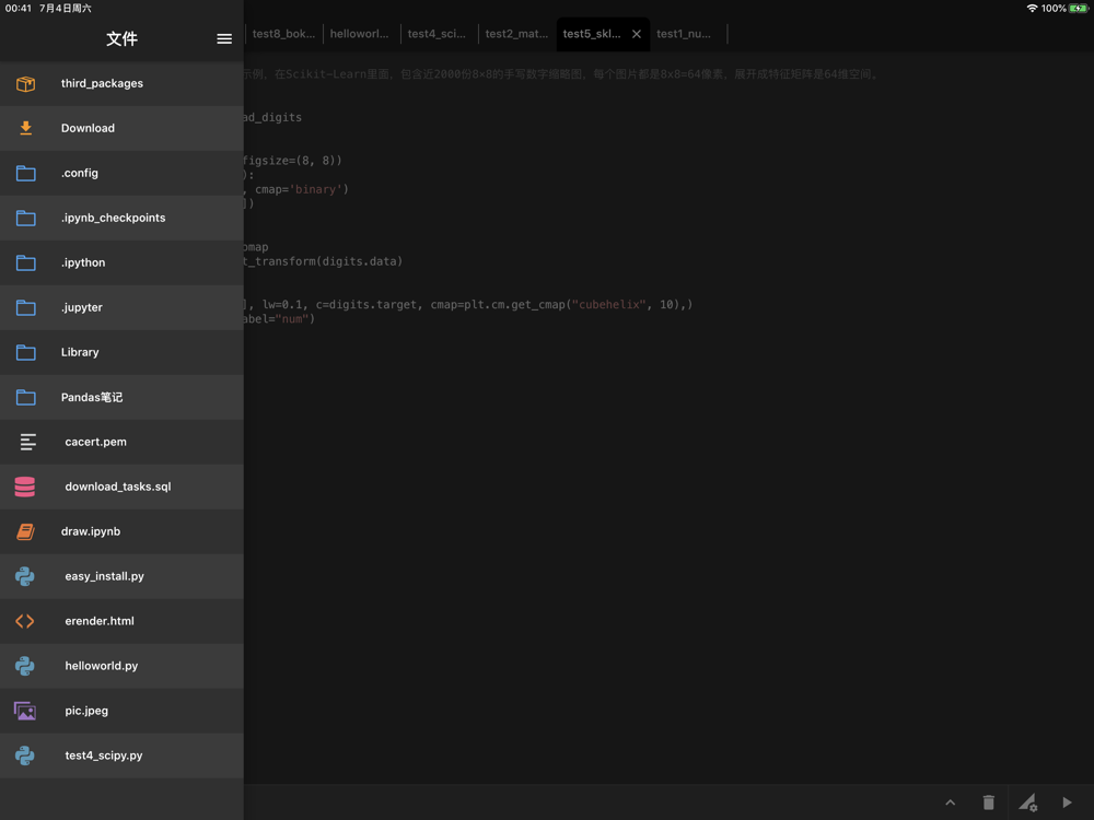 - 支持文件上传分享下载等(通过Jupyter Notebook服务),支持itunes共享文档- 内置浏览器,可直接在本App中打开Jupyter Notebook页面,也可打开其它网页- 支持多文档,可在多个tab中打开代码编辑器,教程文档,交互式解释器,浏览器等,方便您边看文档学习边写代码