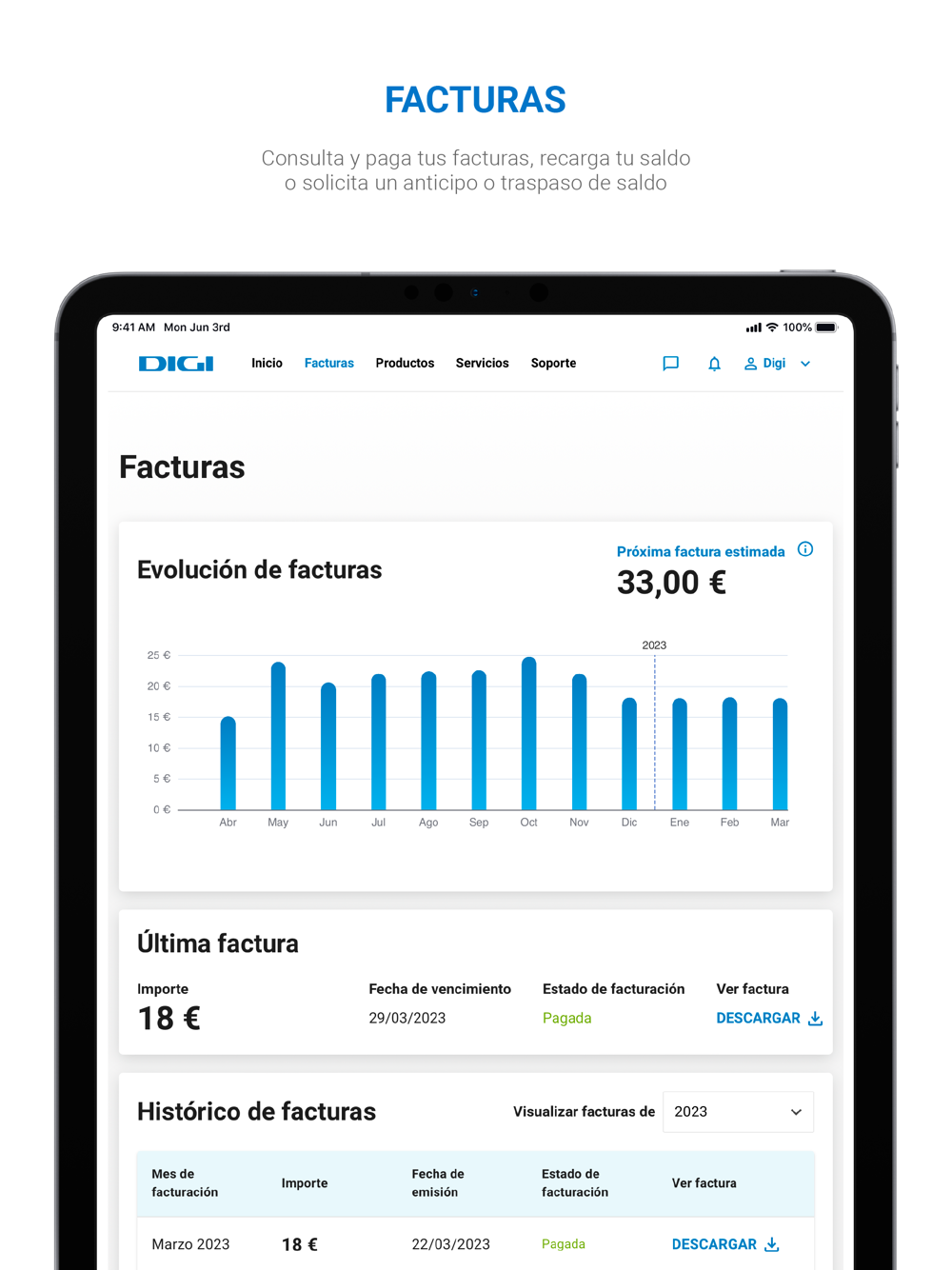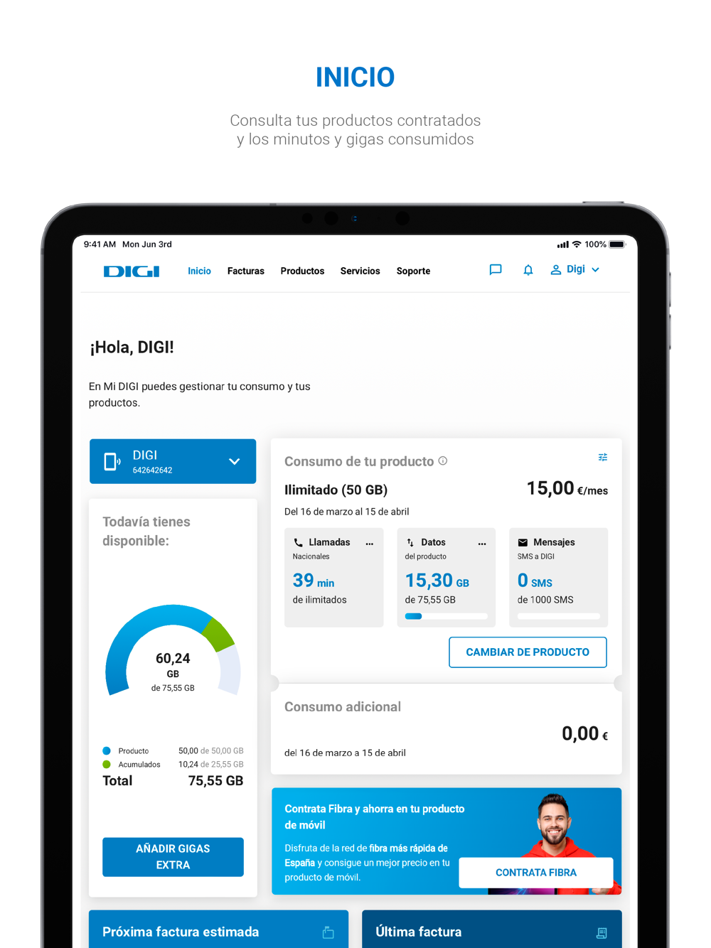 Descarga Mi DIGI y gestiona tus productos y servicios de forma más visual e intuitiva.