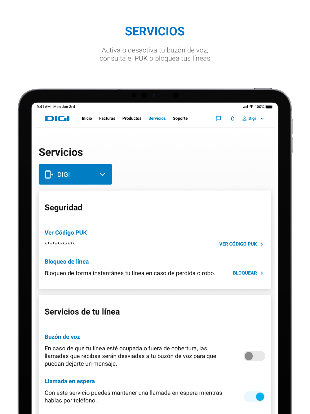 • Contratar y gestionar servicios como DIGI storage o Conexión Plus.