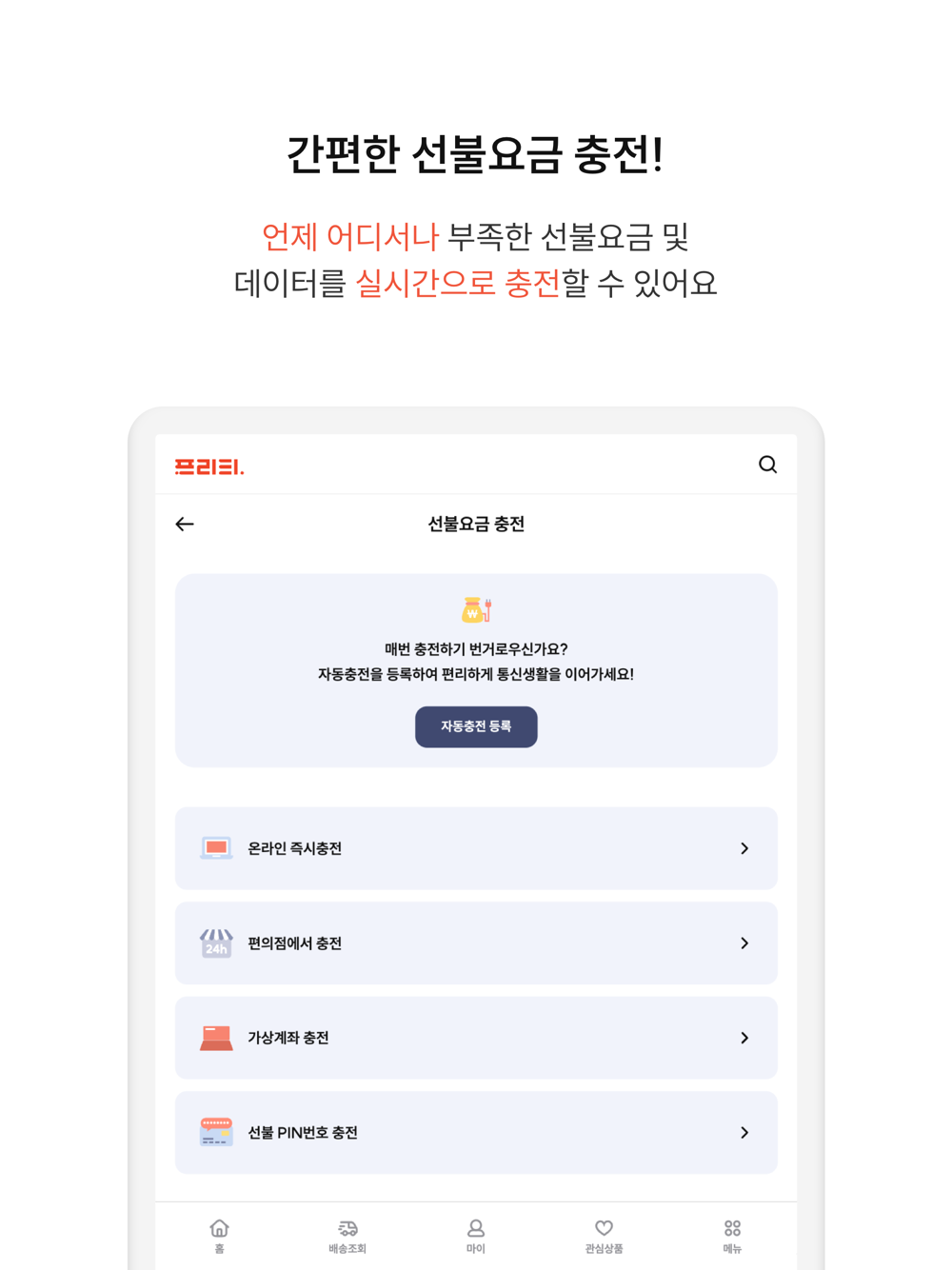 프리티 앱을 통해 쉽고 편리한 선불 충전을 경험해보세요!