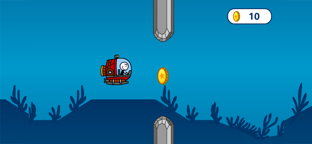 Stickman submarine game: click on the screen to control the height of the submarine, never hit the stone.