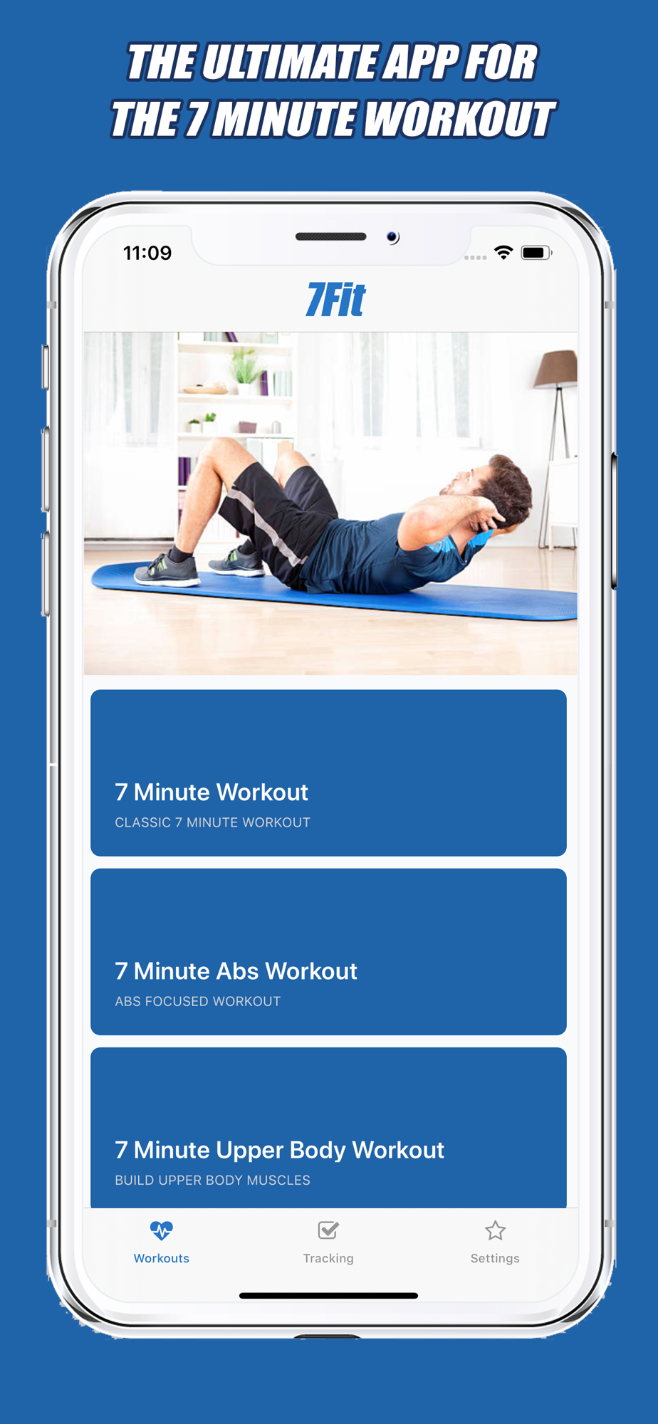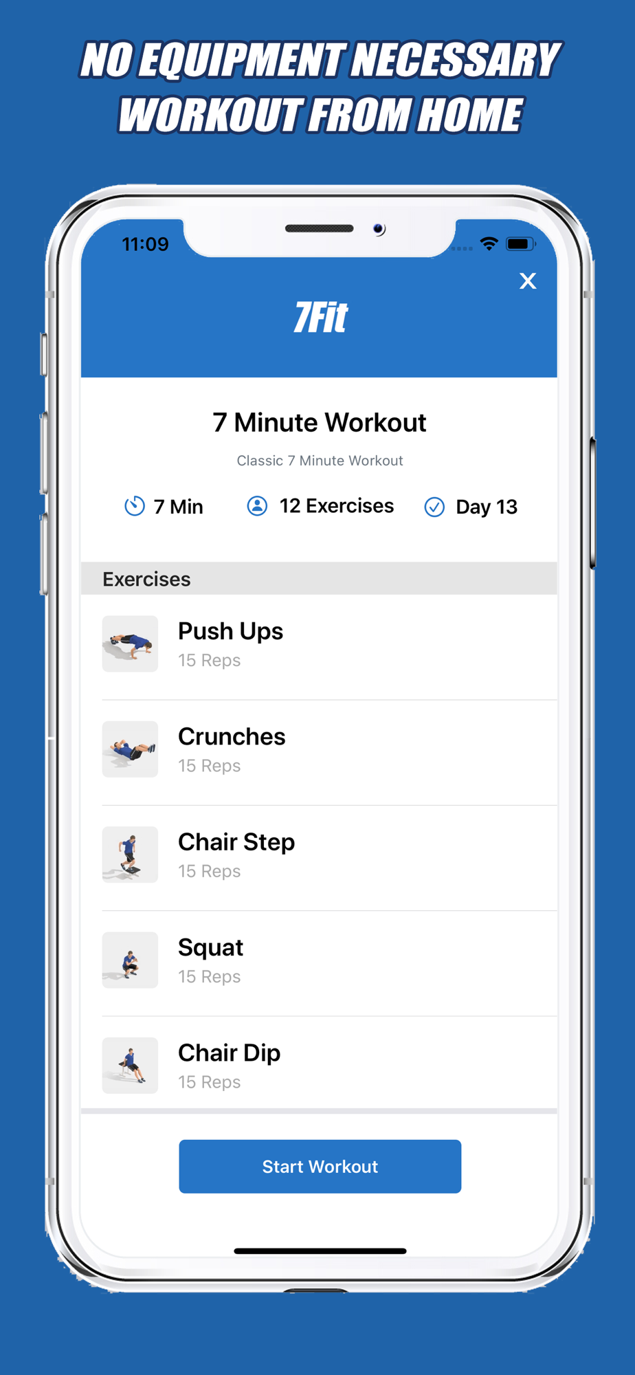 7 Minute Workout + lets you do the revolutionary 7 Minute Workout which research has shown can give you a fast, efficient, whole body workout routine in just 7 minutes a day by utilizing 12 exercises you can do at home with no equipment.