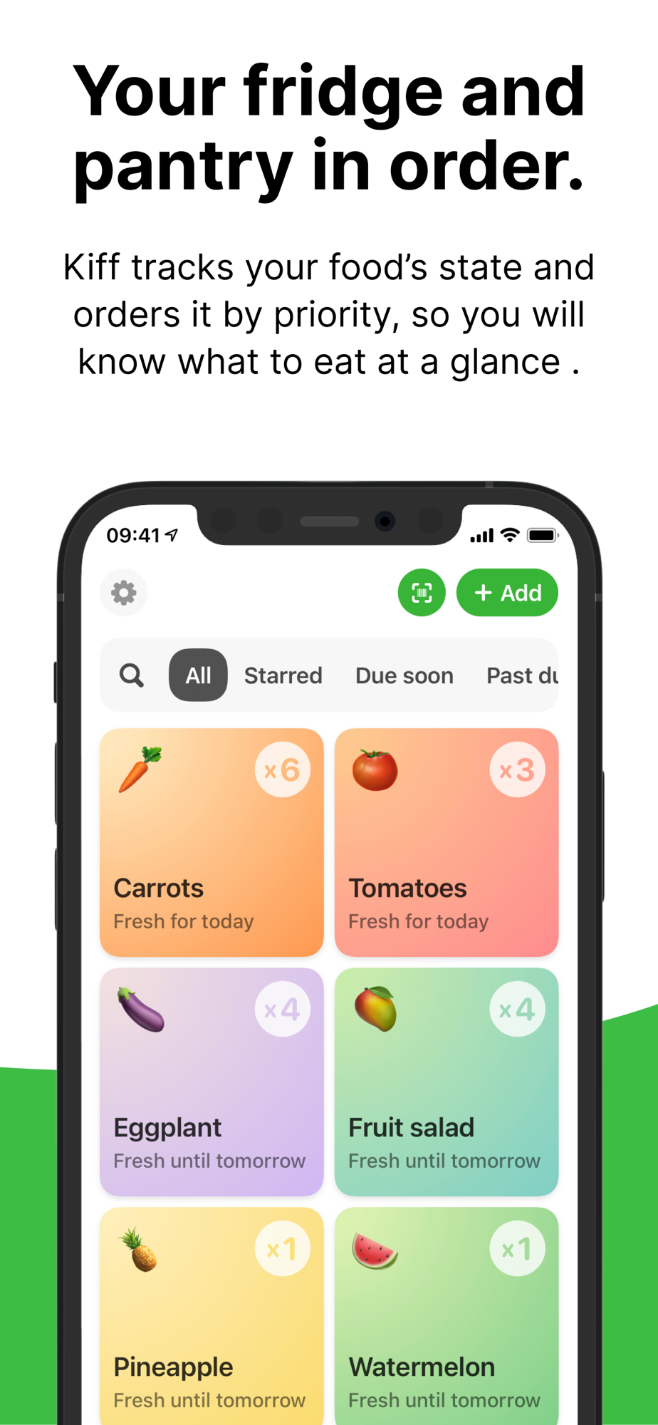 Are you tired of opening your fridge and pantry to find expired groceries and wasted food? Kiff is here to transform the way you manage your food, helping you always enjoy it in its freshest and best state while saving you time and money.