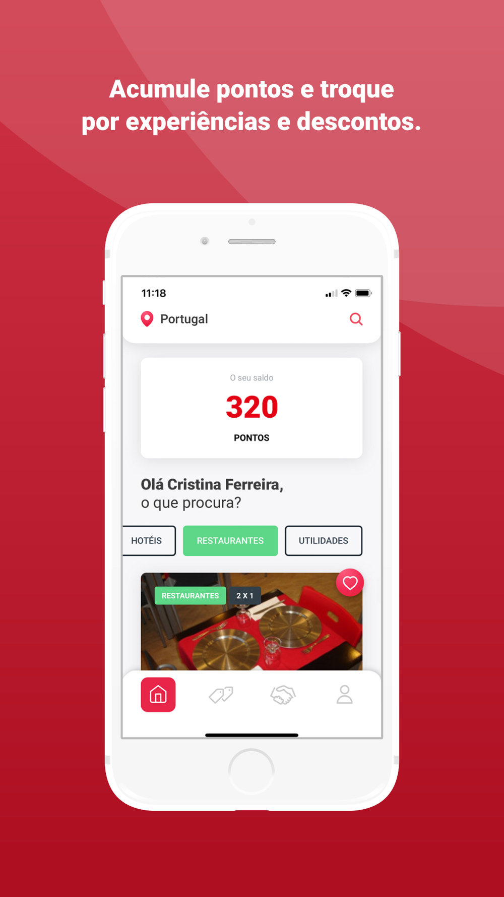 Junte pontos e resgate ofertas e descontos em experiências, serviços, férias, estadias, jantares e muito mais.