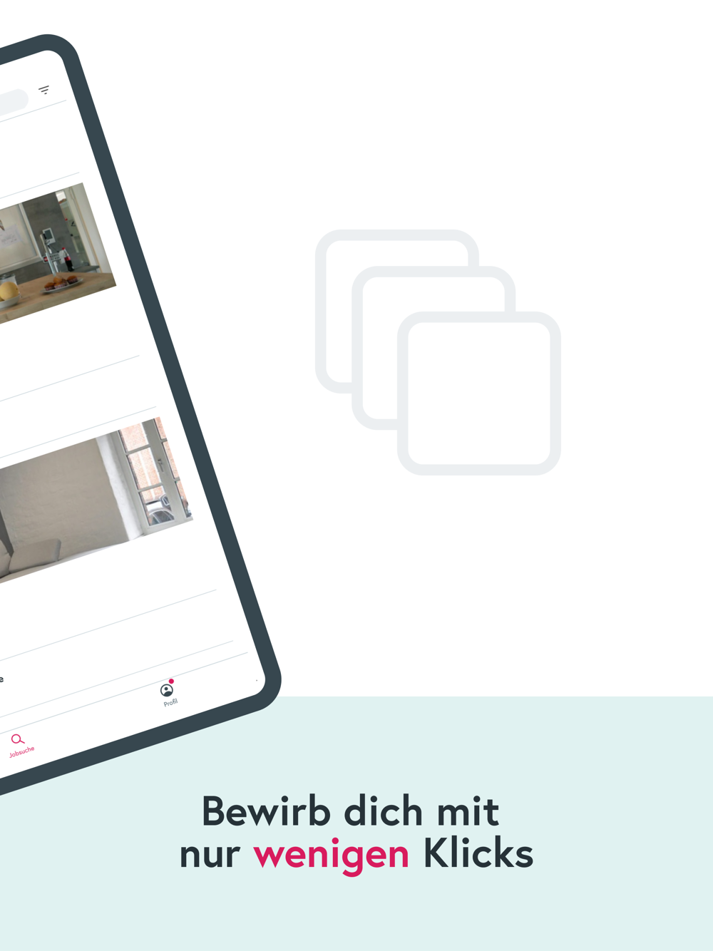 Jobsuche und Bewerbungsapp in einem: Finde passende Jobs und bewirb dich in wenigen Minuten. Du füllst dein Profil einmalig aus und kannst dich damit in kürzester Zeit auf mehrere Jobs bewerben. Gerade keine Zeit? Dann setze das Jobangebot auf deine Merkliste und bewirb dich, sobald es dir passt.