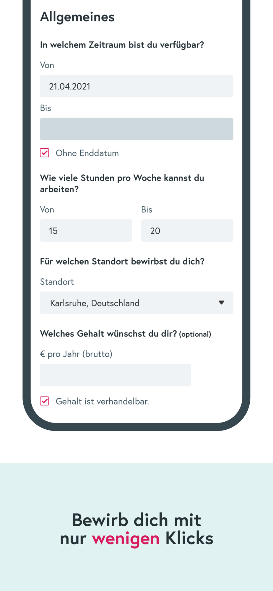 Mit dem Live-Status hast du deine Bewerbung im Blick und bist immer up-to-date. In der Zwischenzeit sorgen wir dafür, dass du schnell eine Antwort bekommst.