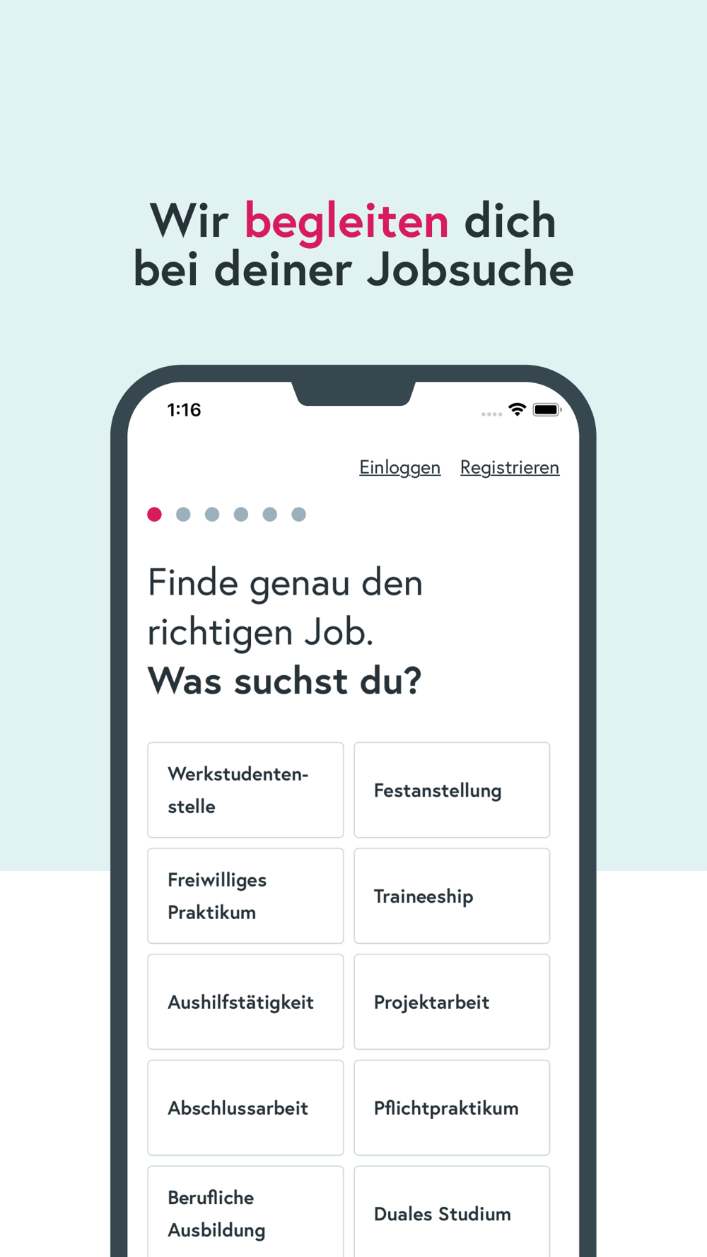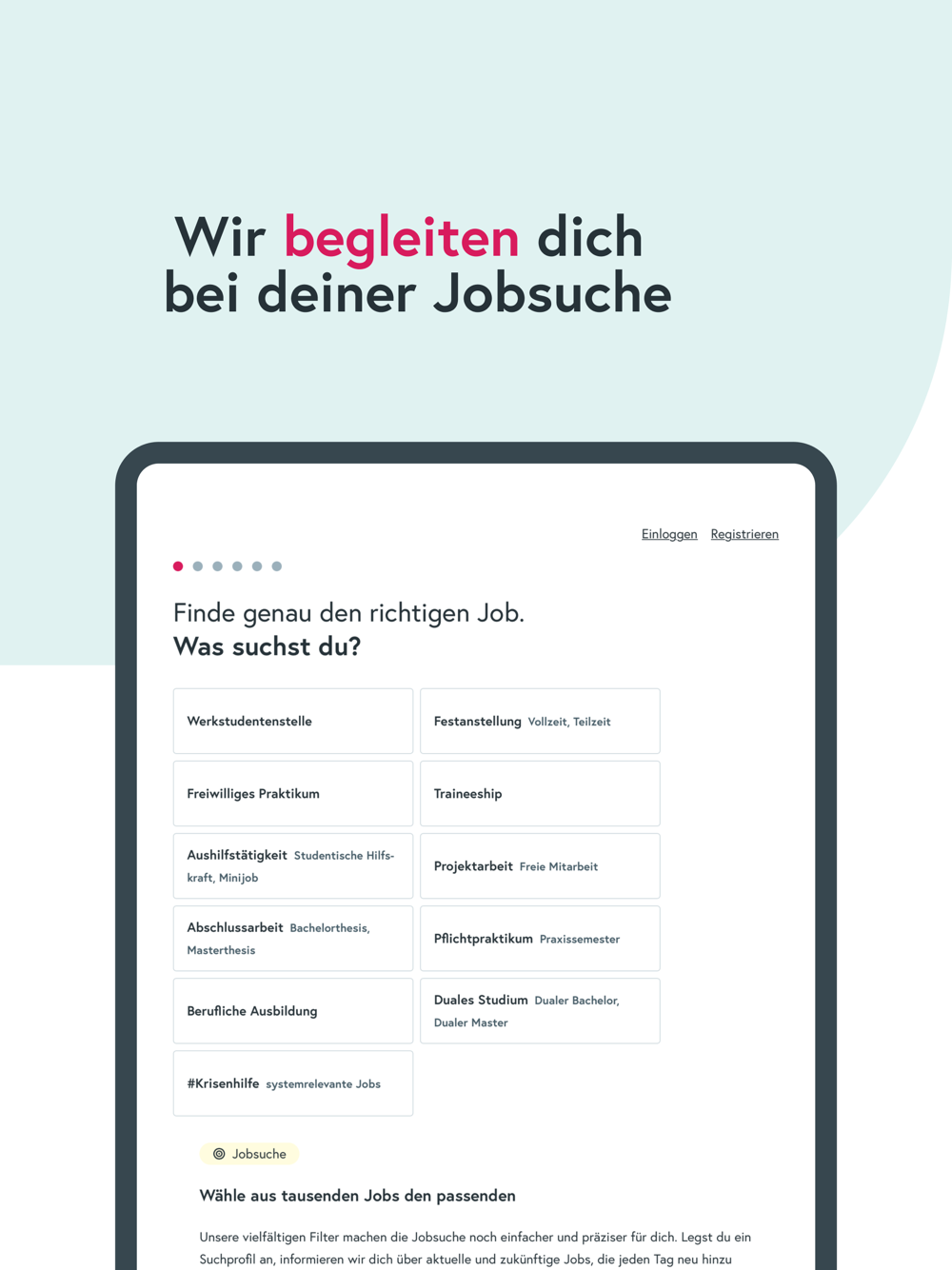 - Lege eines oder mehrere Suchprofile an: Basierend auf deinen Wünschen schlagen wir dir die passenden Jobs vor. Lehn dich entspannt zurück.