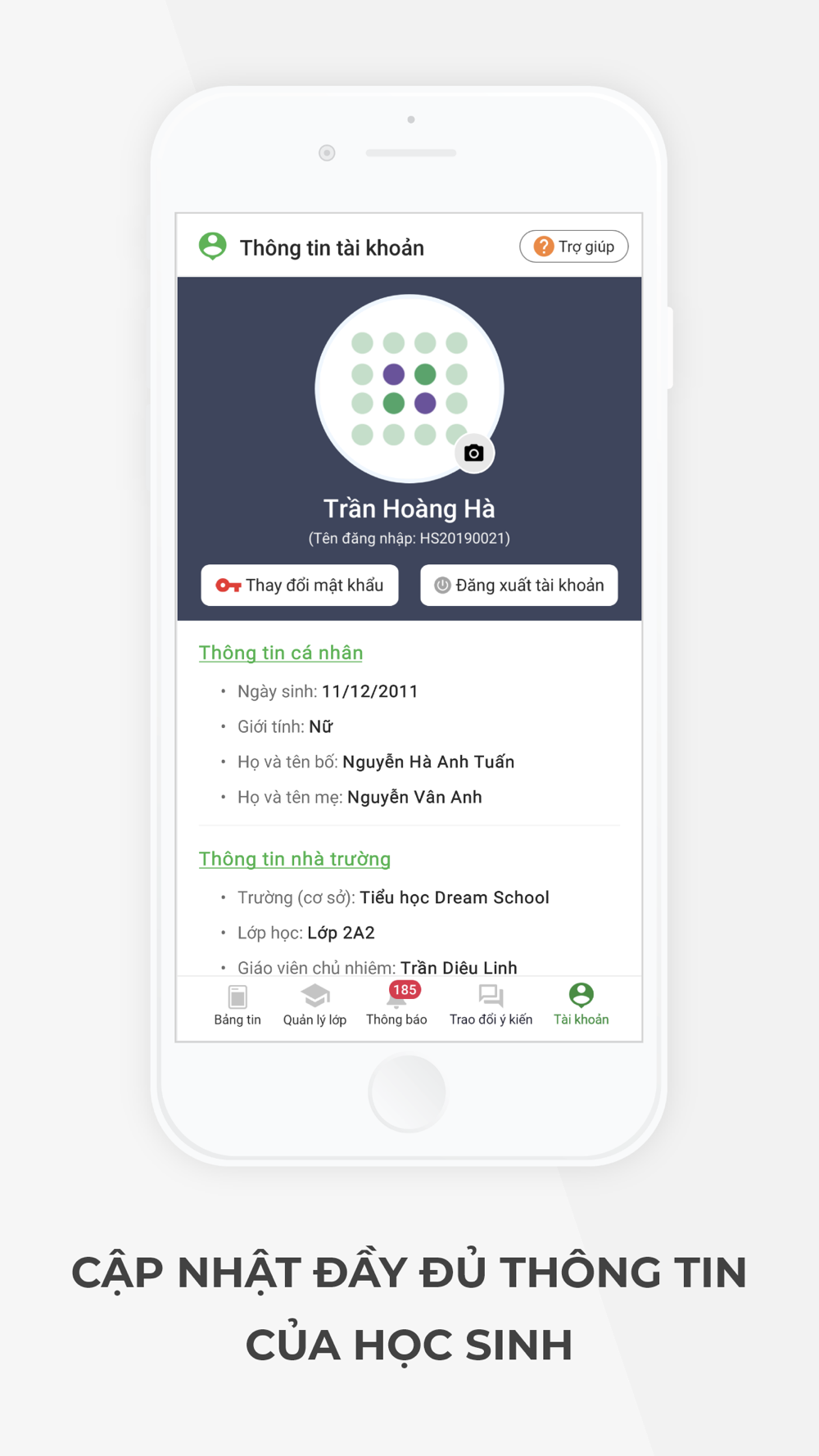 - Nhận thông báo, tin nhắn của nhà trường, giáo viên về việc học tập và hoạt động của con.