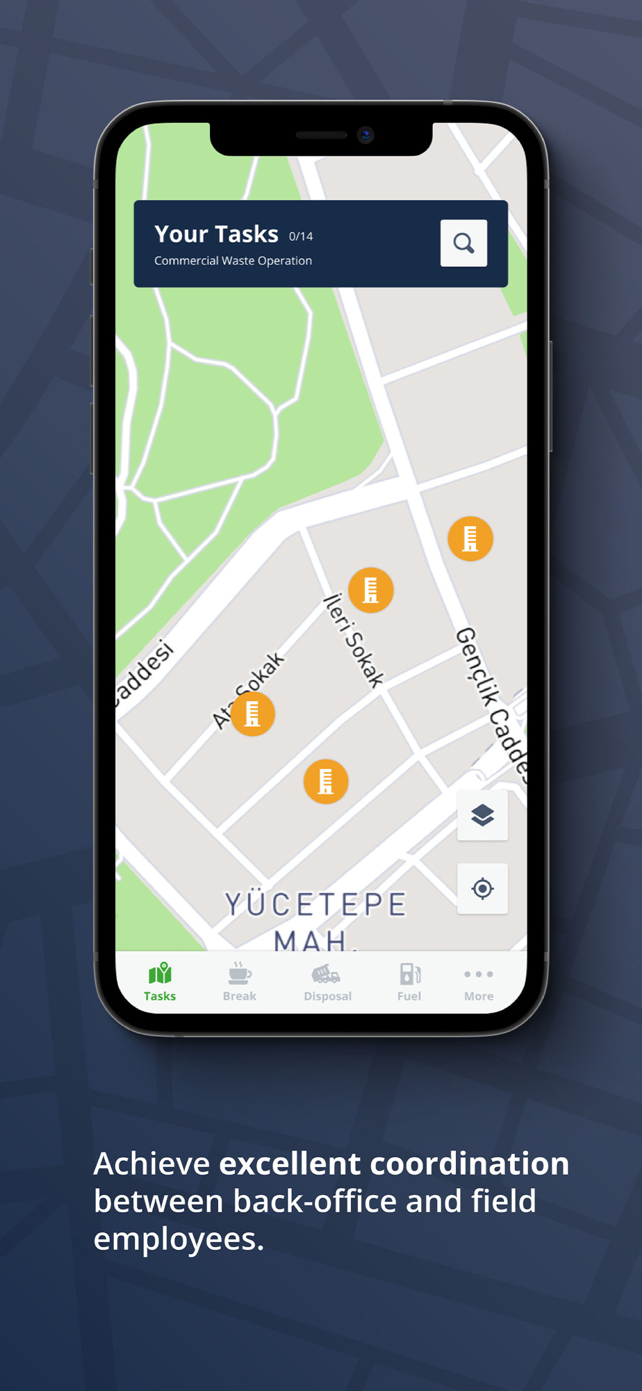 Workforce App is a specially designed application that substantially facilitates the coordination between back-office and field employees working in the waste management industry and provides the advantages of minimum battery consumption and fewer tracking points when the screen is off. It digitizes all operations and processes on the field from beginning to end.